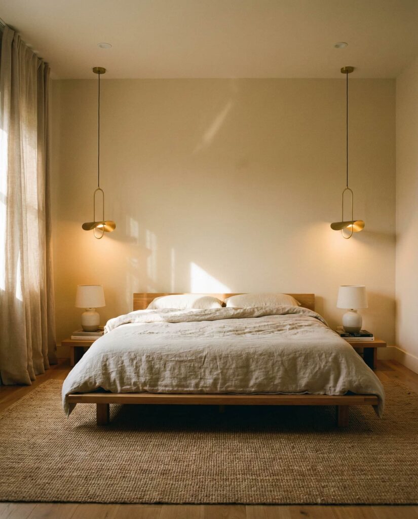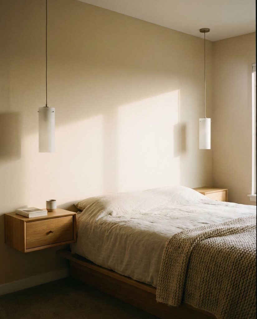 Replacing table lamps with Ideas hanging lights is a popular shift in bedroom Design. Suspended Hanging pendants free up nightstand space while adding a clean, architectural feel. These Fixtures often hang lower, creating intimate pools of light perfect for reading and relaxing. Interior editors at Dezeen note that hanging lights bring a hotel-like polish without sacrificing comfort. The effect feels Modern, practical, and visually lighter, especially in smaller bedrooms where clutter quickly disrupts the Aesthetic.