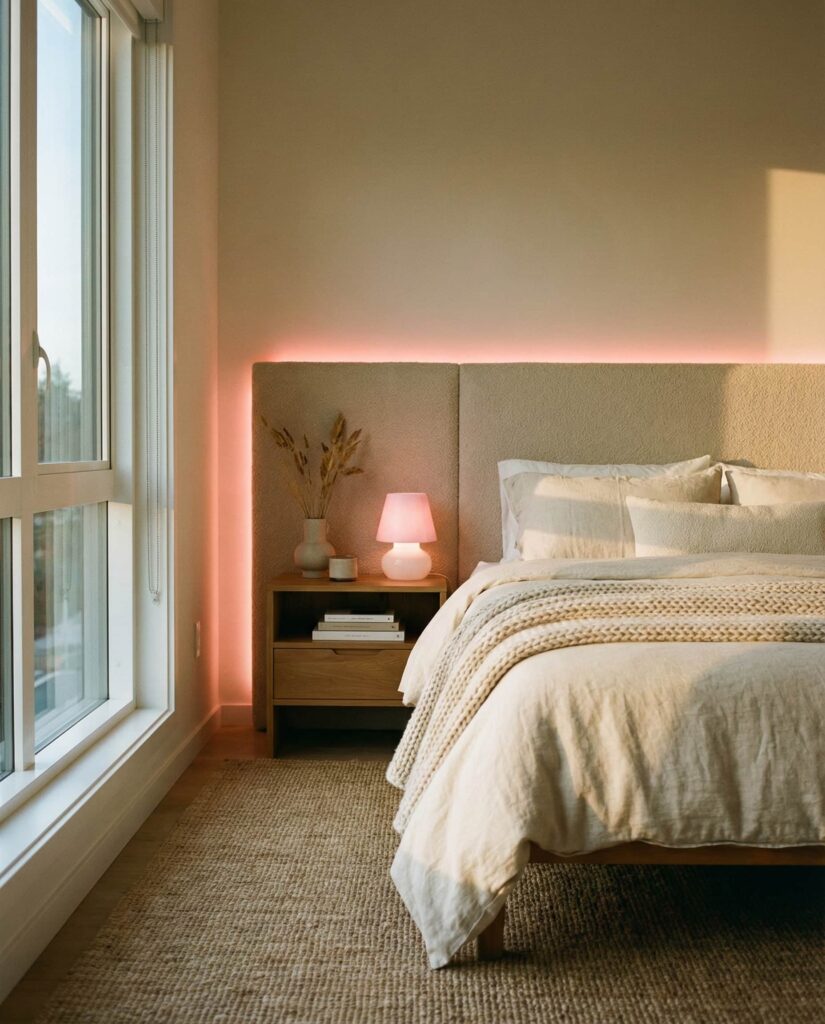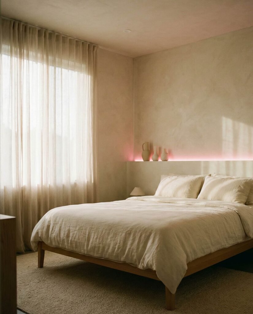 Accent lighting in Pink tones works best when balanced with soft neutrals. These Ideas introduce gentle color through indirect lighting, creating warmth without dominating the room. The approach suits Primary bedrooms seeking personality with restraint. Designers often use pink light as an accent rather than a main source, maintaining comfort and visual harmony.