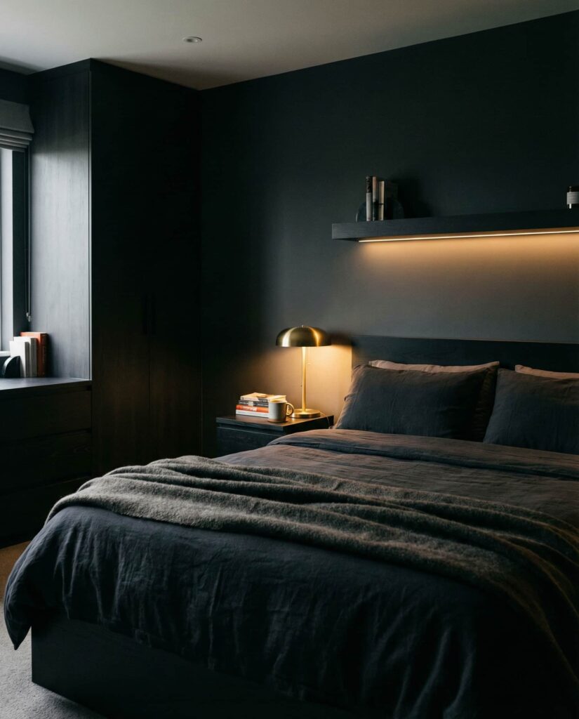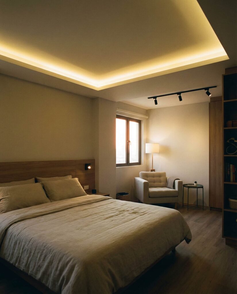 For those drawn to drama, Moody bedroom lighting is a strong trend. These Ideas ceiling modern designs use darker Shade choices, low-level Ambient lighting, and focused Fixtures to create depth. Think charcoal ceilings, shadowed corners, and warm pools of light that feel intimate rather than gloomy. This approach works especially well with textured finishes and layered materials, offering a rich Aesthetic that feels grown-up and personal. It’s less about brightness and more about emotional impact.