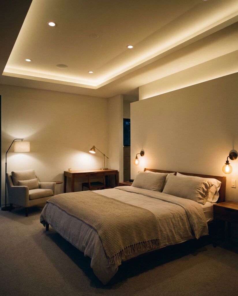 Zoned lighting is one of the most practical Ideas for bedrooms that serve multiple functions. By using targeted Fixtures ceiling above sleeping, dressing, or seating areas, the Ceiling becomes an active part of the Design rather than a flat surface. This approach creates soft Ambient separation without walls, keeping the room visually open and Cozy. Designers often recommend this strategy for larger Primary bedrooms, where thoughtful light placement adds structure and daily Inspiration while maintaining a clean, Modern flow.