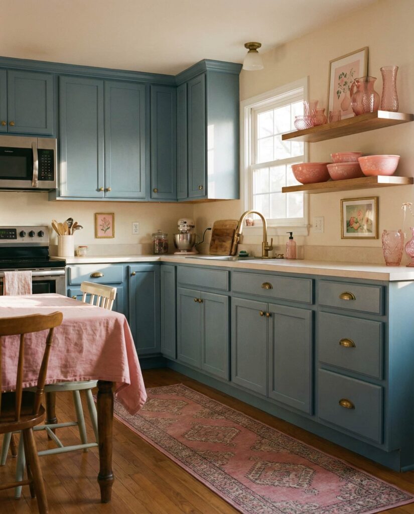 In more eclectic homes, Pink and blue appear through layered Decor rather than permanent finishes. Blue Cabinets provide structure, while pink accents—art, textiles, or ceramics—add softness. I’ve seen this approach resonate with younger homeowners who want flexibility as tastes evolve. Neutral Walls keep the palette balanced, while personal objects bring authenticity. It’s expressive without feeling experimental for the sake of it.