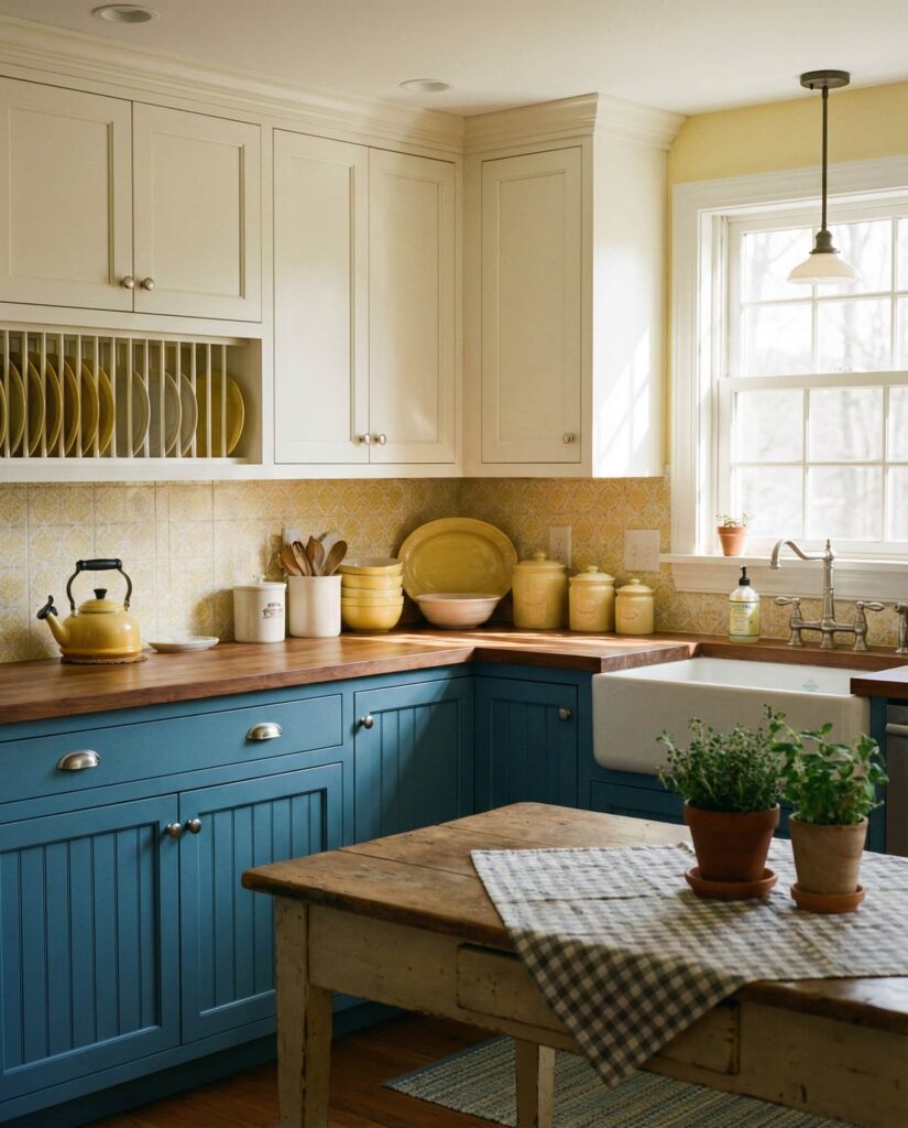 Pairing Yellow and blue is a classic move that’s being reinterpreted in fresh ways. Instead of bold primary tones, designers lean into muted blues with soft yellow Decor—think stools, dishware, or textiles. This approach adds warmth and energy without overwhelming the kitchen. I’ve seen this work particularly well in family homes, where the space needs to feel cheerful and functional. Blue Cabinets ground the room, while yellow accents bring a sense of optimism that feels genuinely lived-in.