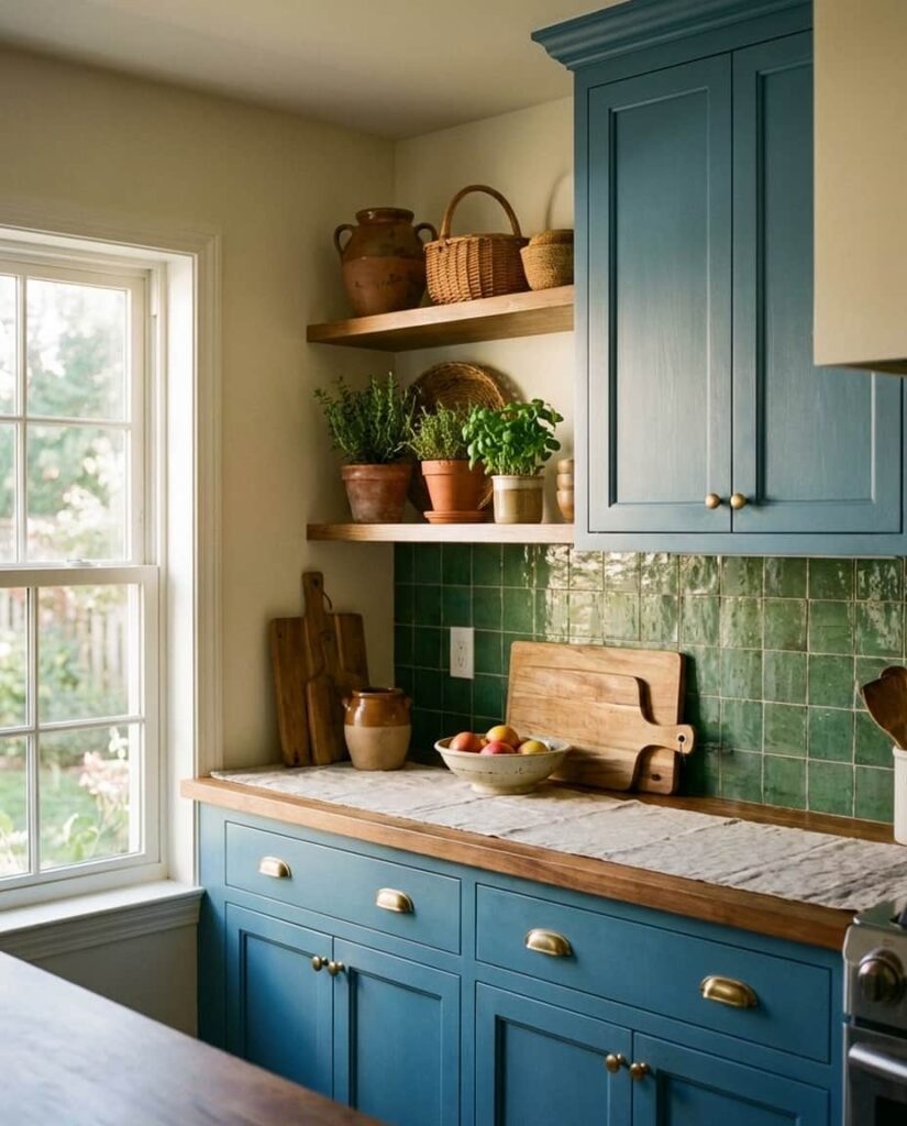 Blending Green and blue creates a grounded, nature-inspired kitchen that feels especially relevant now. Designers often choose blue Cabinets with green tile Backsplash ideas or plants as part of the Decor. I’ve seen this approach resonate with homeowners who value sustainability and calm interiors. Natural materials—stone, wood, clay—tie the palette together, while soft Walls prevent the space from feeling too saturated. It’s an idea that feels restorative, not styled for show.