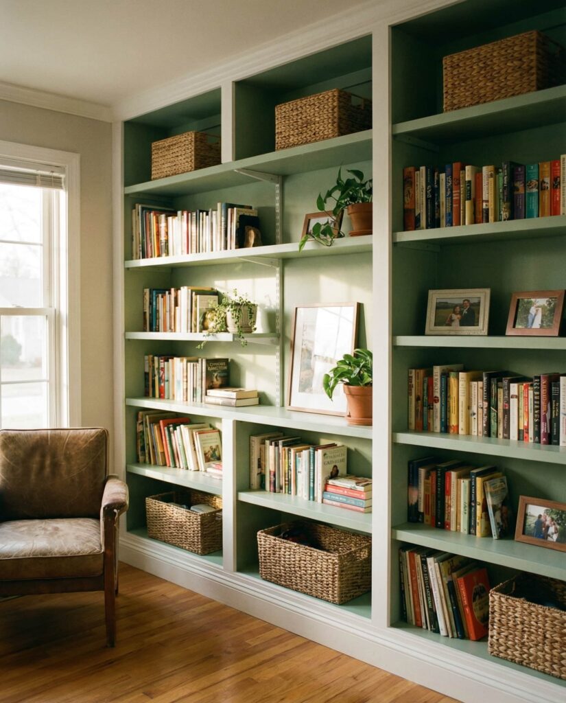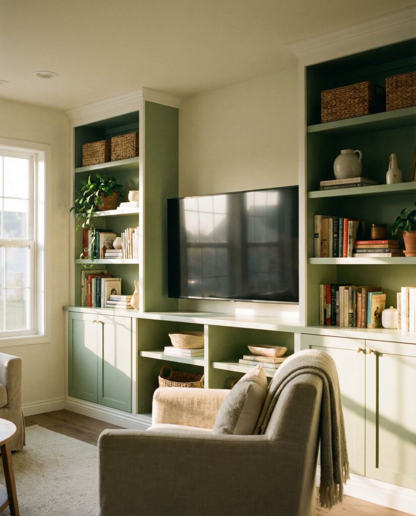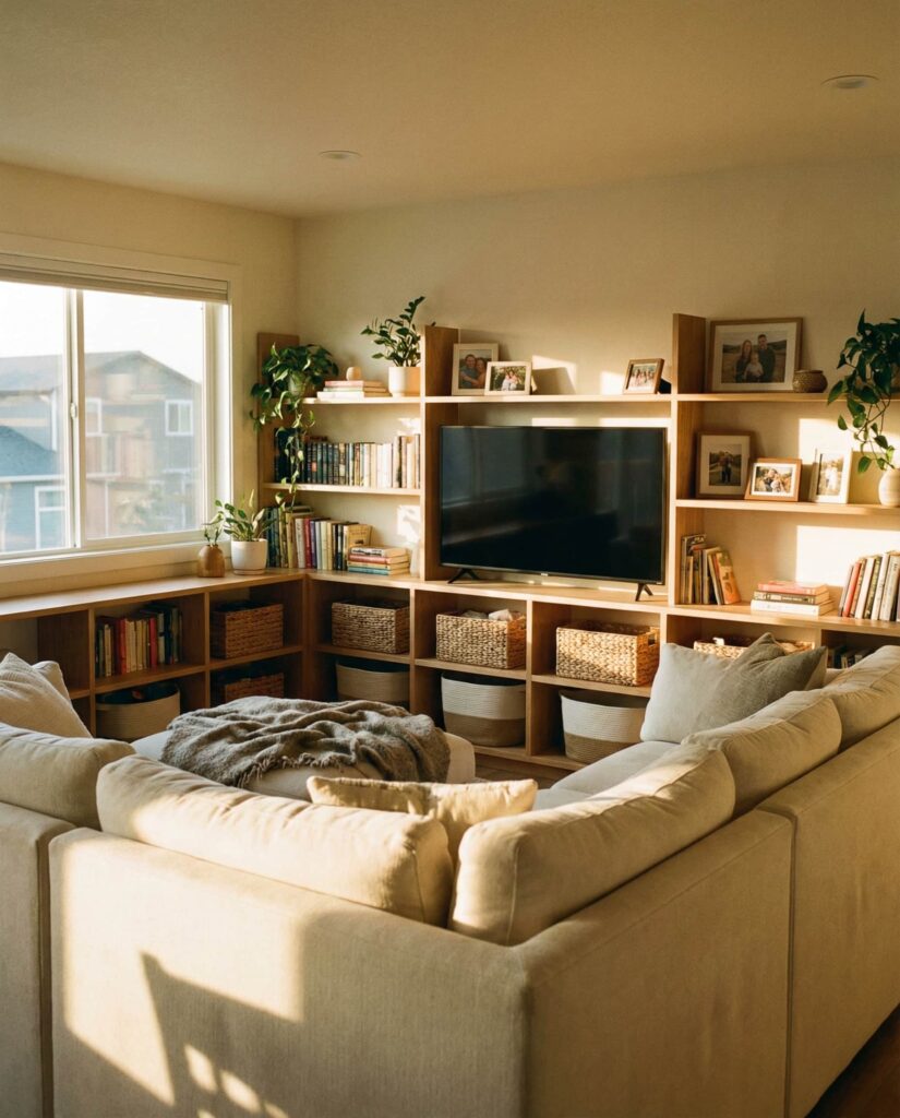 10. Built-In Shelves Designed Around the Couch Zone