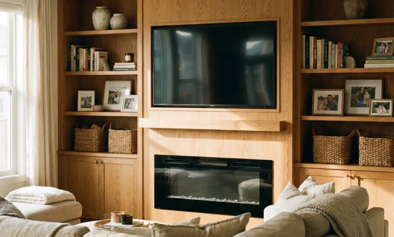 A built-in wall that integrates a Fireplace and Tv remains one of the most requested layouts I hear about from homeowners planning renovations. In 2026, the focus is balance: shelves that visually soften a Tv and electric fireplace combination without overwhelming the room. This works especially well in Large living rooms or those with High ceilings, where vertical shelving draws the eye upward. Designers often recommend a neutral White or Black finish, with subtle Wooden accents for warmth. I’ve noticed families appreciate how this setup organizes books, Decorating objects, and tech while keeping the seating area relaxed and centered around the fire, not the screen.