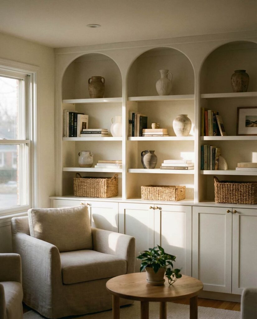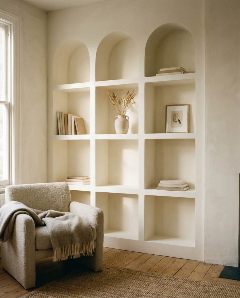 8. Arched Built-In Shelves for Soft Architectural Detail