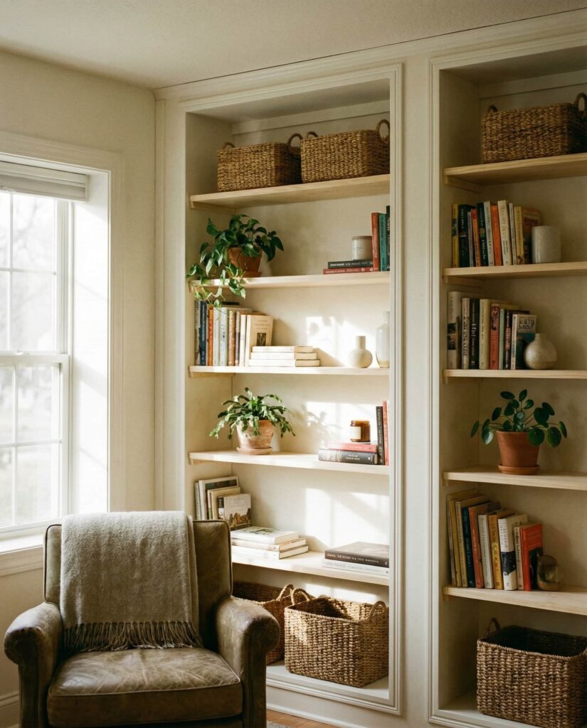 Built-in shelves continue to shape how living rooms function and feel, offering solutions that adapt to real life rather than trends alone. If one of these ideas sparked inspiration—or if you’ve tried a different approach in your own home—share your thoughts in the comments. Conversations around design are always richer when real experiences are part of the mix.