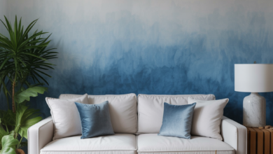 A gray and blue living room captures a balance many Americans seek today—calm, modern, and expressive. In recent trends noted…