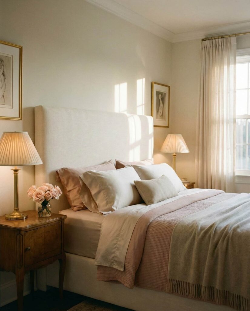 Classy bedrooms for women, especially for women luxury and for women luxe, are embracing calm neutrals layered with tactile richness. Think warm ivories, champagne beige, and subtle Pink undertones paired with upholstered headboards and flowing drapery. This approach works beautifully for women apartment living, where restraint feels elegant rather than boring. I’ve seen friends swap stark white walls for creamy tones and immediately feel their rooms become more for women cozy and for women beautiful. Designers often suggest balancing softness with structure—tailored bedding, minimal decor—to keep the look Chic and Elegant, never overly Girly.
