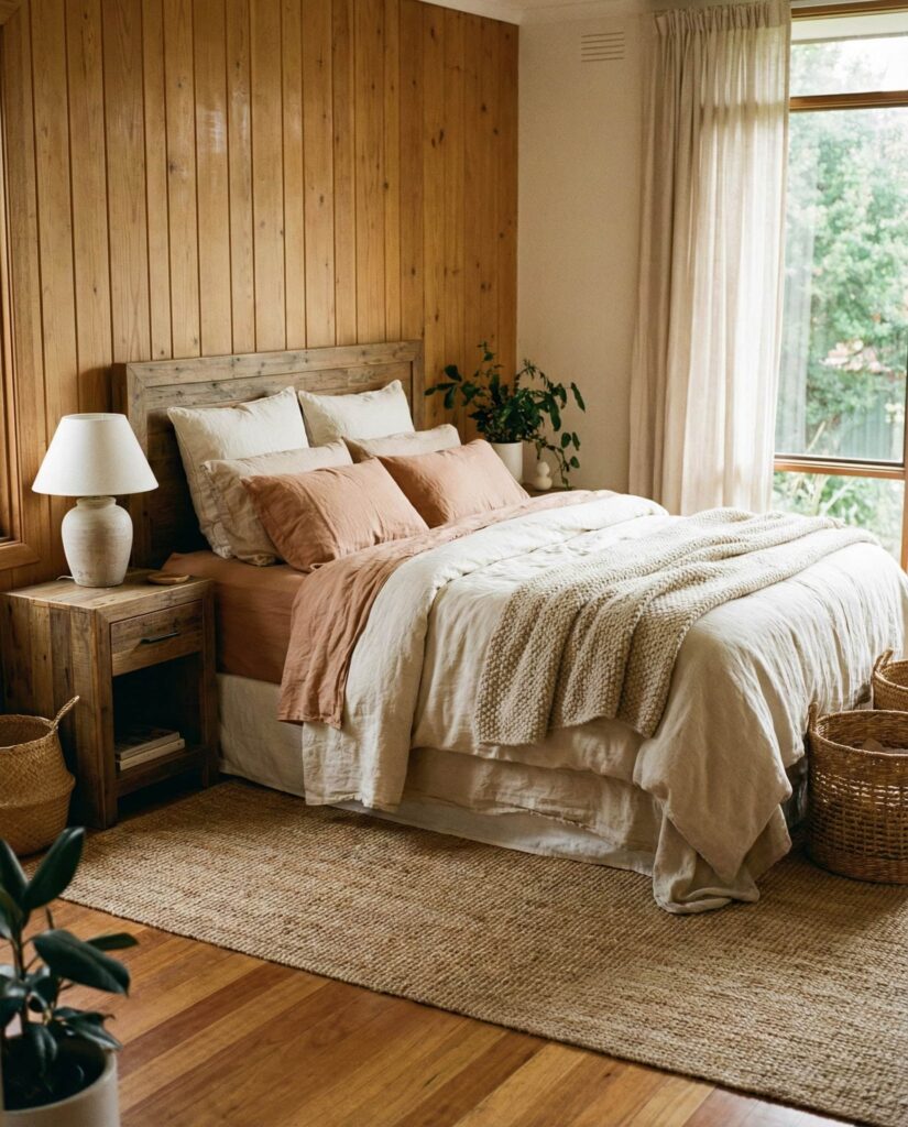Bedrooms for couples wood lovers are leaning into texture as much as material. Raw wood nightstands, paneled walls, and woven accents make the space feel grounded and honest. This approach fits Couples wood aesthetics that value longevity over trends. I’ve noticed wood-forward rooms age beautifully, gaining character rather than looking dated. Combined with neutral bedding, the style feels warm, intimate, and quietly confident.