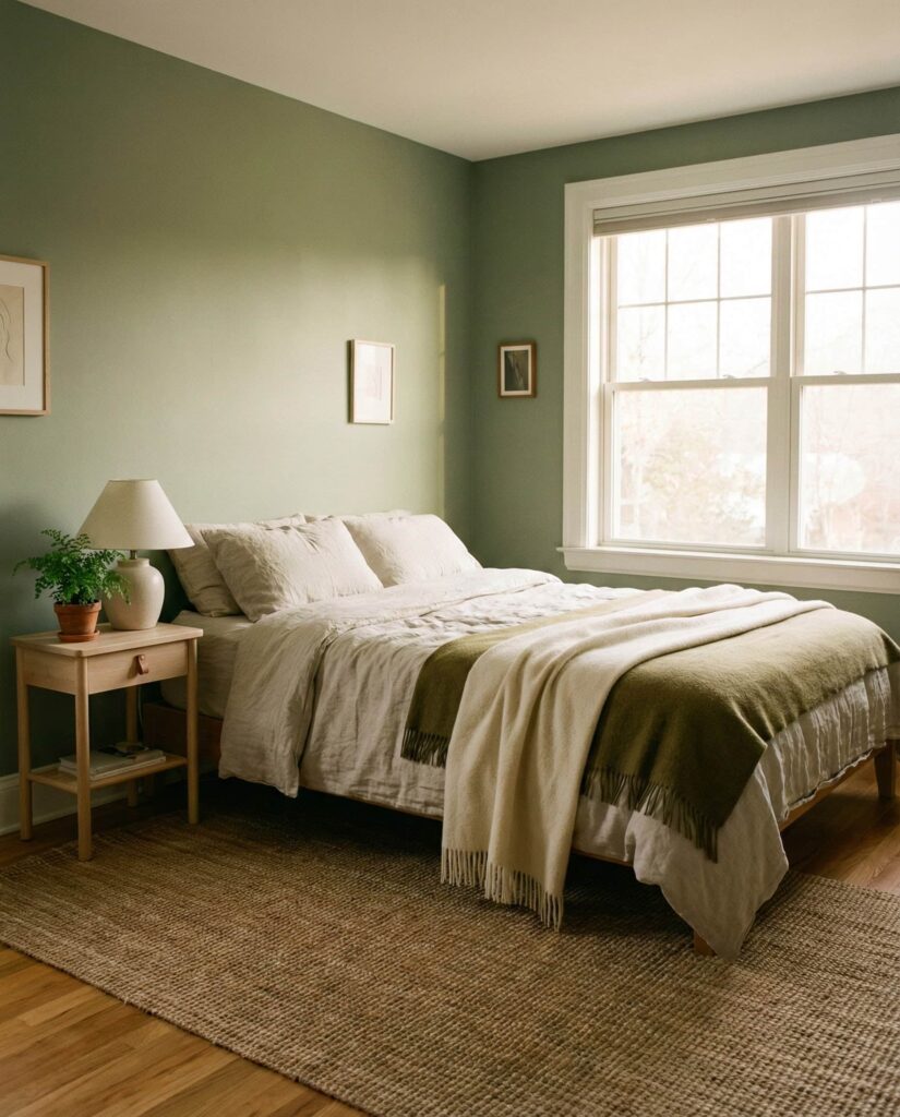 Green has proven itself as one of the most restorative bedroom colors. Used in elegant tones, Green works beautifully for women cozy spaces and shared bedrooms alike. Sage, olive, or eucalyptus walls paired with soft fabrics help reduce visual stress. I’ve personally found green bedrooms encourage better rest, especially when paired with minimal decor. The effect is subtle, calming, and deeply Cosy.