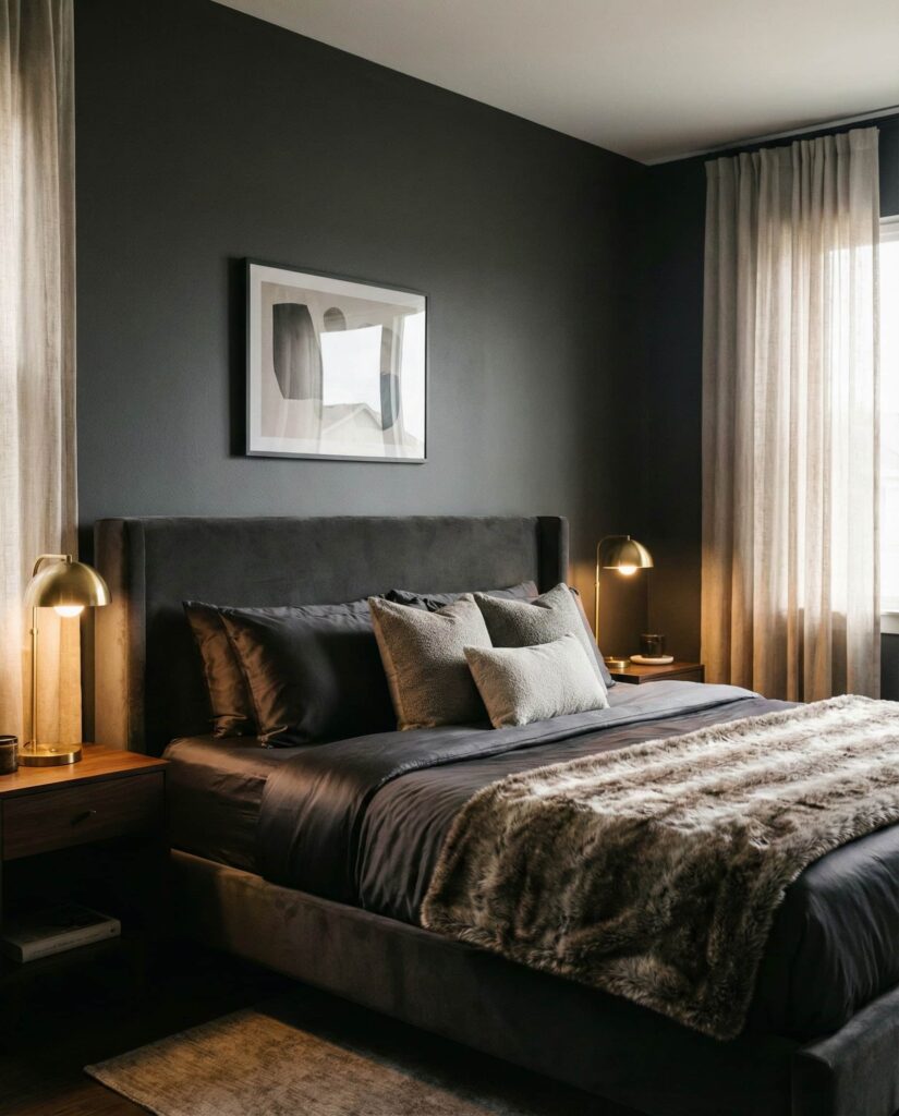 18. Chic Dark Bedrooms with Soft Contrast