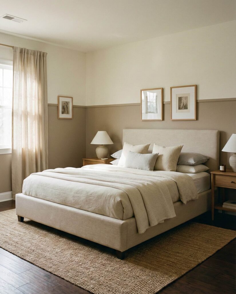 Bedrooms designed around thoughtful Couples wall colors are becoming a signature of classy interiors. Rather than relying on furniture or decor, this idea focuses on layered paint tones—soft taupe, warm Grey, muted Green, or subtle two-tone walls—to define mood. It works especially well for Couples who want a shared space that feels balanced and emotionally neutral. I’ve seen couples resolve style differences simply by choosing wall colors that feel calm to both partners. The result is Elegant, quietly Chic, and supportive of daily rest without visual tension.