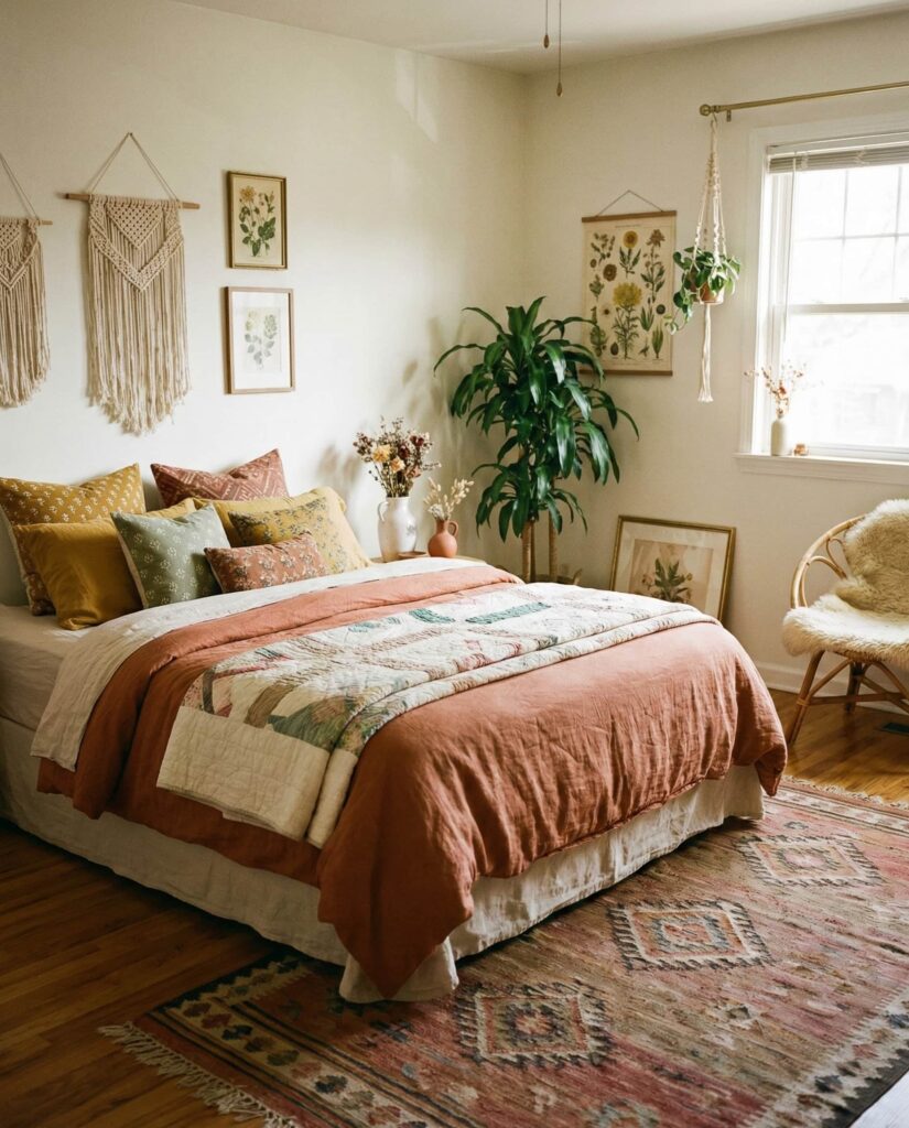 Bedrooms for women bohemian and Women bohemian styles remain strong, but 2026 favors edited boho over clutter. This approach suits creative personalities, Teens, and adults alike who value self-expression. Layered rugs, textured throws, and handcrafted decor define the space while maintaining comfort for women cozy living. Drawing inspiration from Apartment Therapy, many decorators recommend mixing eras thoughtfully. I’ve seen boho rooms feel deeply personal without feeling messy when color stories and materials stay consistent.