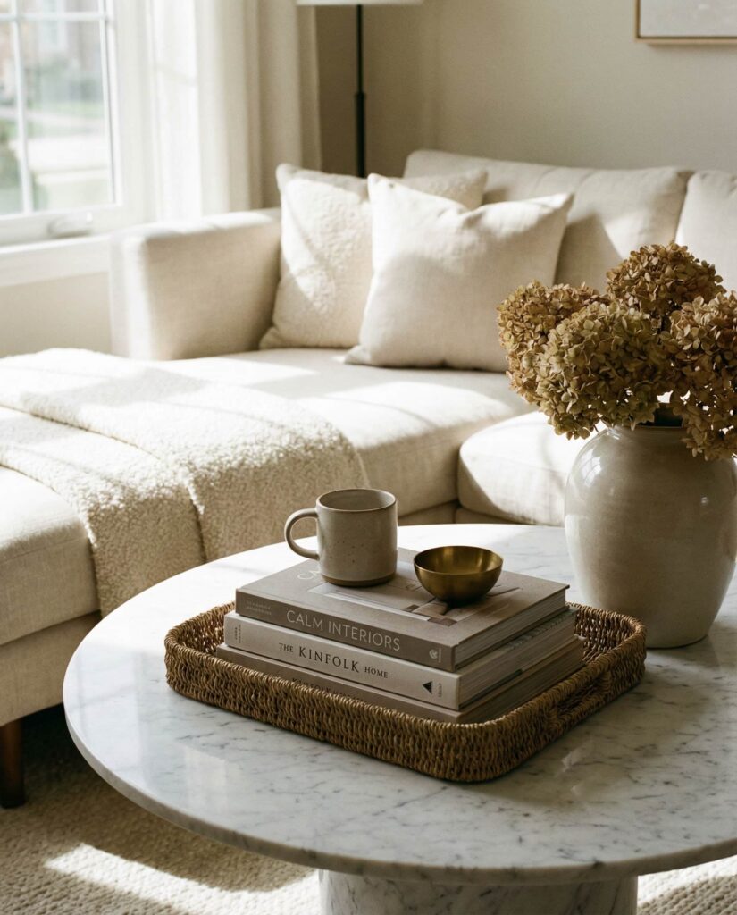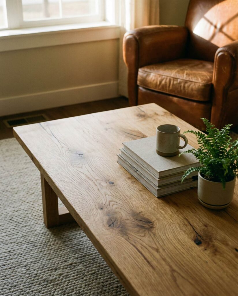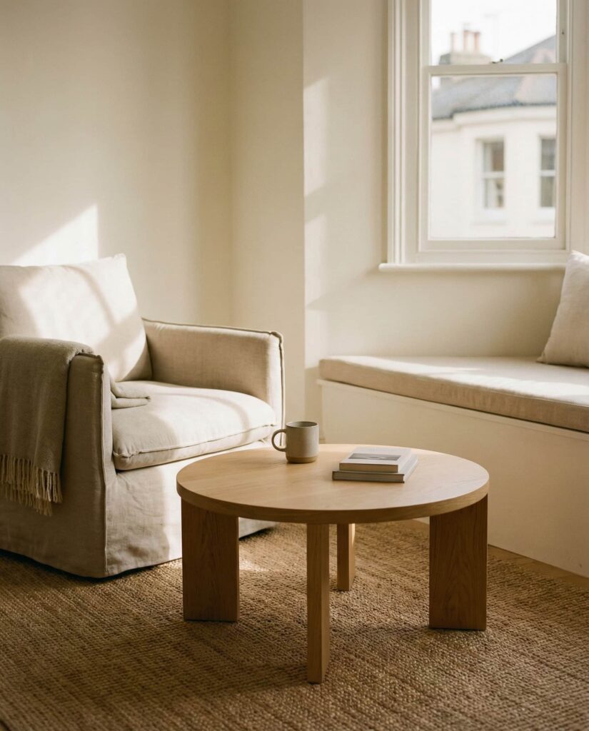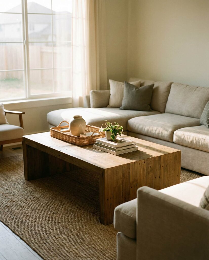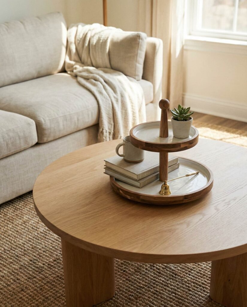 Coastal coffee table ideas aren’t limited to beach houses. In 2026, light woods, soft whites, and organic textures bring a relaxed coastal mood into everyday living room spaces. I’ve noticed this works especially well with Oval or Round tables that echo natural forms. Keep decor minimal—woven accents and neutral ceramics—to maintain the calm, breezy effect.