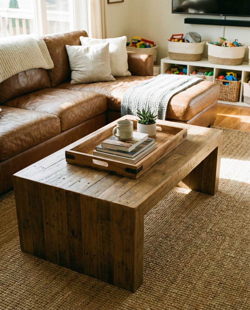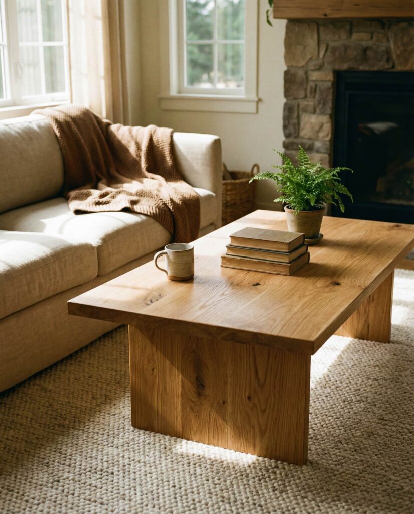 A Wooden coffee table never truly goes out of style, but in 2026 the focus is on visible grain and natural imperfections. This approach works beautifully in Farmhouse and relaxed Modern homes alike. I often recommend letting the wood speak for itself—skip heavy decor and opt for a single bowl or book stack. Rectangular wooden tables feel especially timeless, offering durability for daily life while aging gracefully over time.