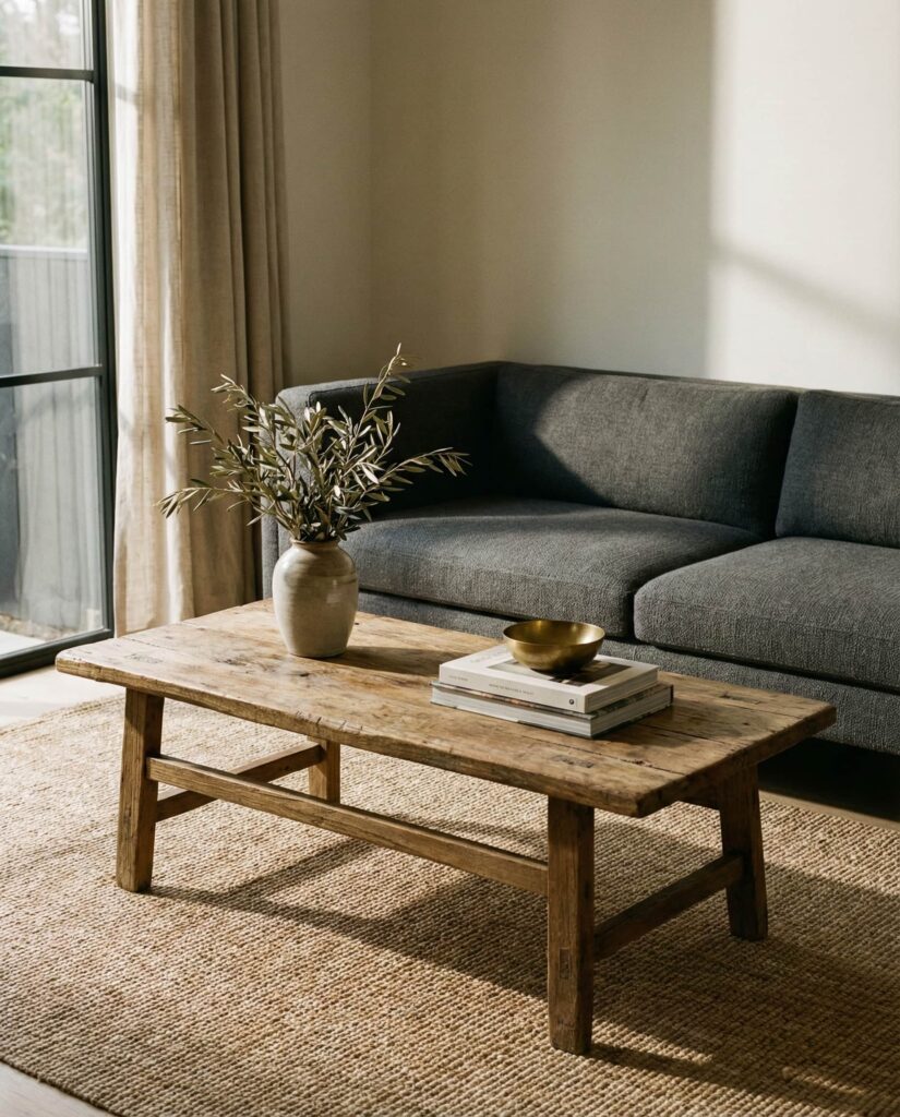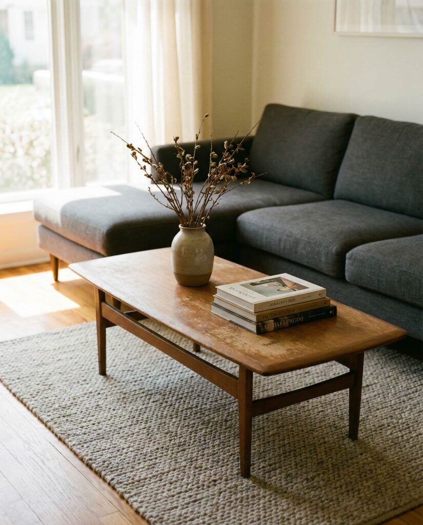 A Vintage coffee table can feel surprisingly current when paired with Modern decor. I’ve seen designers mix old wood tables with contemporary sofas for contrast that feels collected rather than staged. The key is editing—limit decor to intentional pieces so the table’s history remains visible. This blend of old and new adds depth to any ideas living room layout.