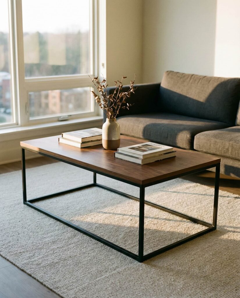 A Rectangular coffee table that combines mixed materials feels especially relevant in 2026, when homes embrace contrast over matching sets. Designers often pair Wooden tops with Black metal frames or subtle Glass shelves to add depth. I’ve seen this work beautifully in both Modern and Farmhouse interiors, especially in a family-focused living room. Keep styling intentional but restrained—books, one sculptural accent, and negative space—so the materials remain the star. This idea balances durability, character, and long-term appeal.