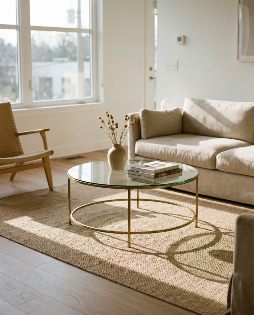 A Round glass coffee table is ideal for spaces that crave lightness. The transparency allows rugs and flooring to remain visible, making small rooms feel larger. In Modern apartments, this choice feels especially smart. I’ve found that pairing Glass with Black metal or warm wood creates contrast without heaviness. Keep decor minimal to preserve the airy effect and let natural light do the work.