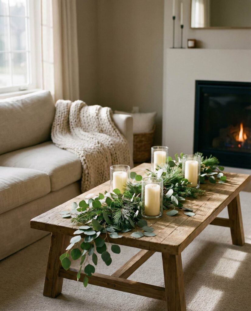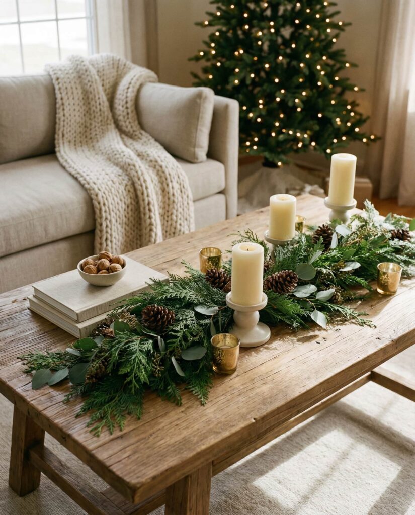 9. Christmas Coffee Table Decor That Feels Calm