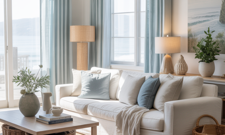 Soft Blue curtains deliver a breezy, coastal energy reminiscent of seaside homes. This palette, often recommended by coastal-style blogs, pairs beautifully with driftwood accents, light Linen, and sandy Beige tones. For anyone craving a relaxed, ocean-inspired aesthetic, blue drapery creates a peaceful focal point. It’s a great choice for both spacious homes and compact apartments looking for a calm, cool vibe.