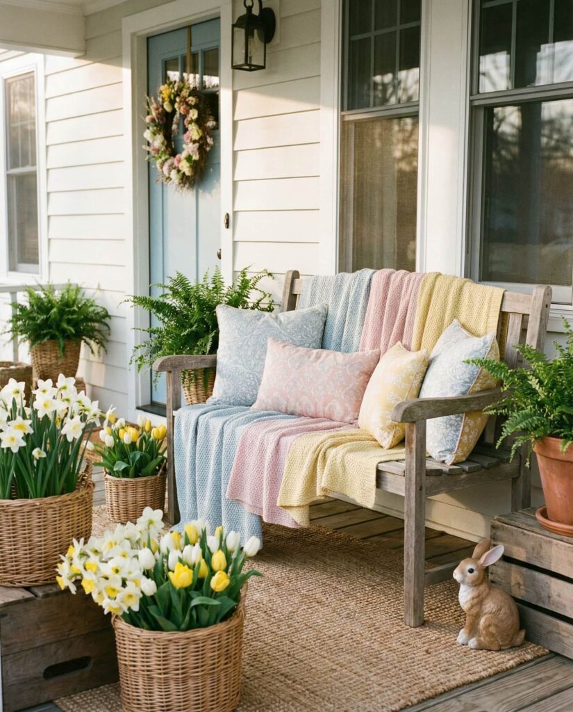 10. Outdoor Spring Porch With Soft Pastels and Texture