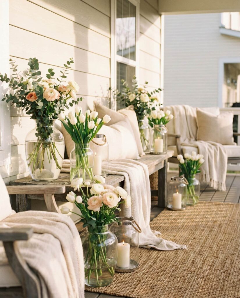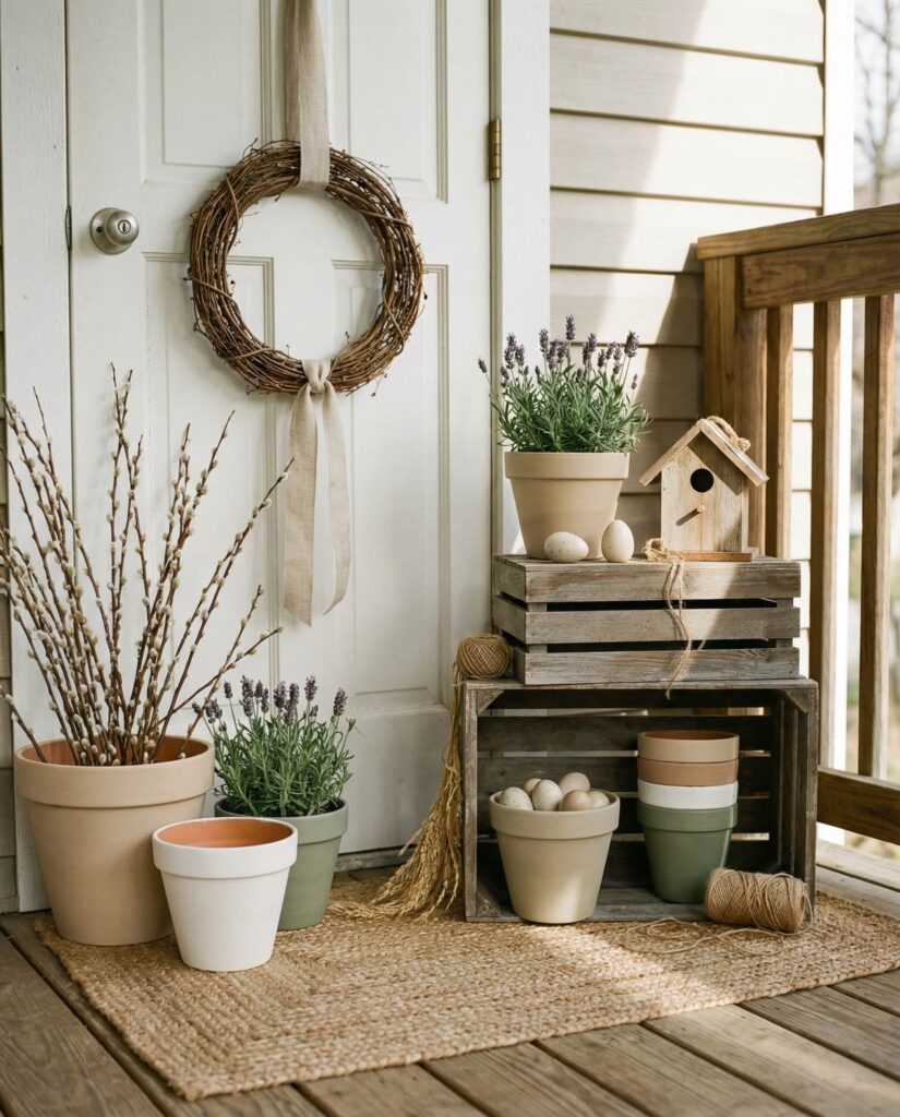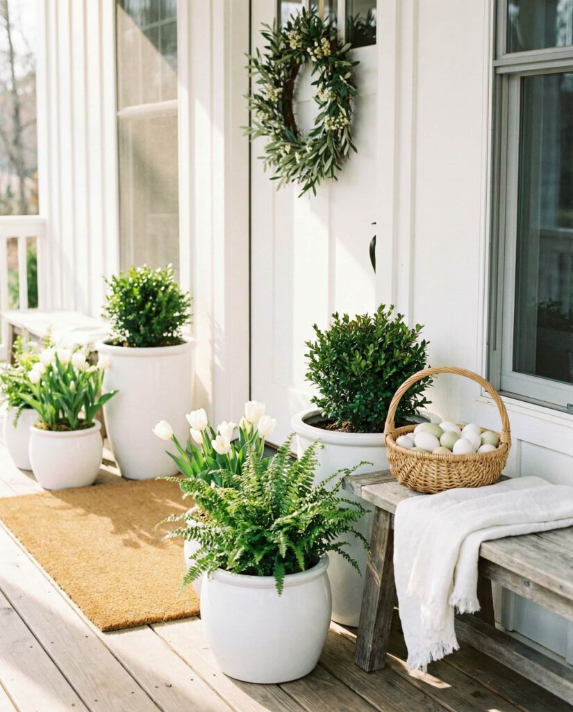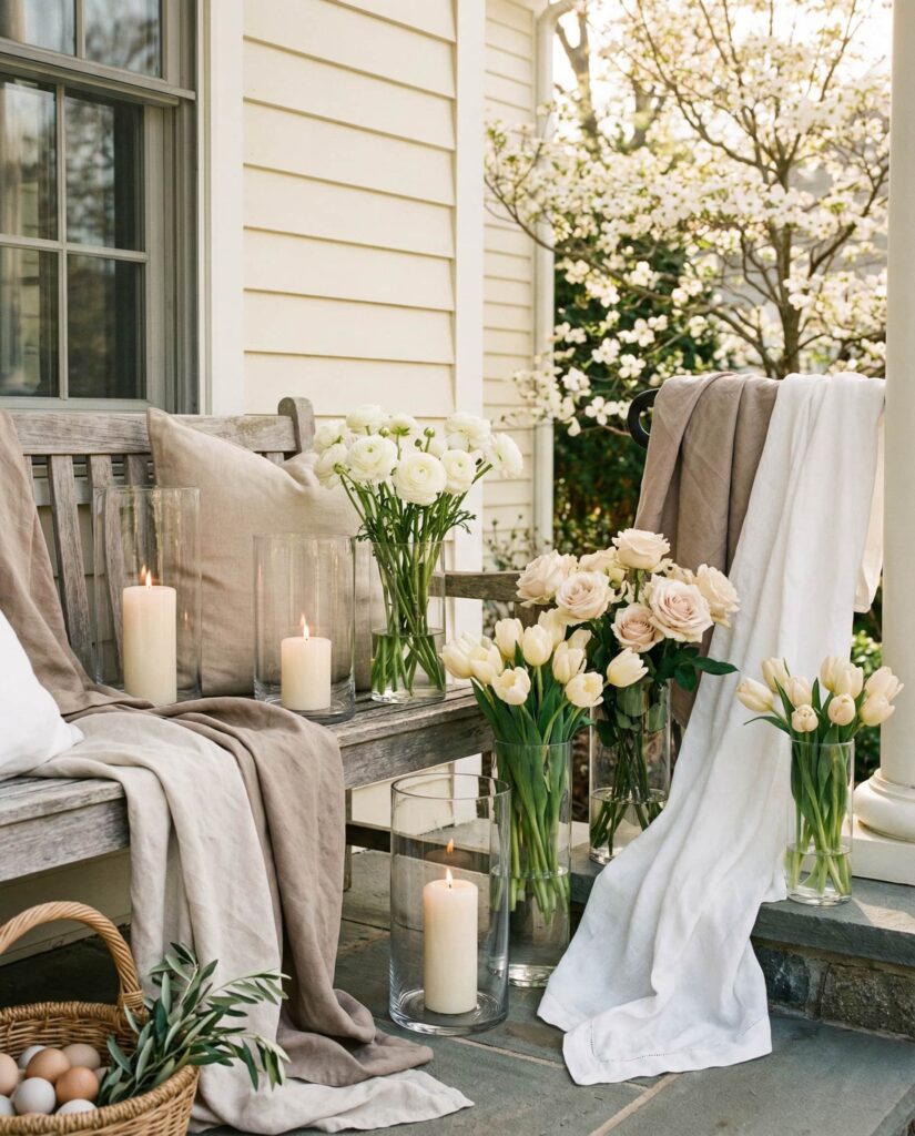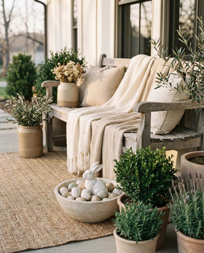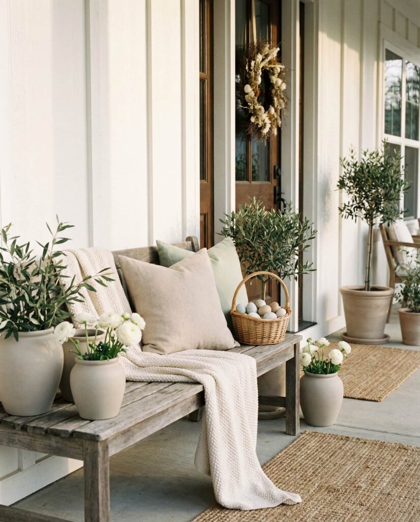 6. Elegant Neutral Porch With Subtle Easter Details