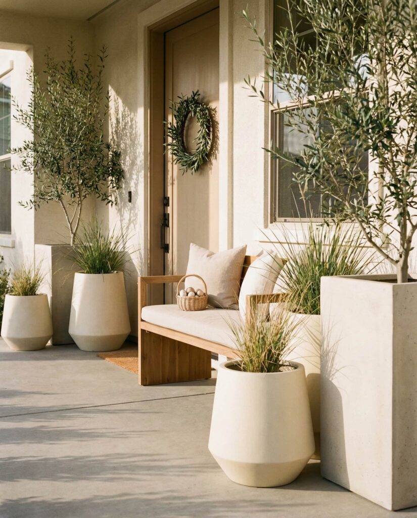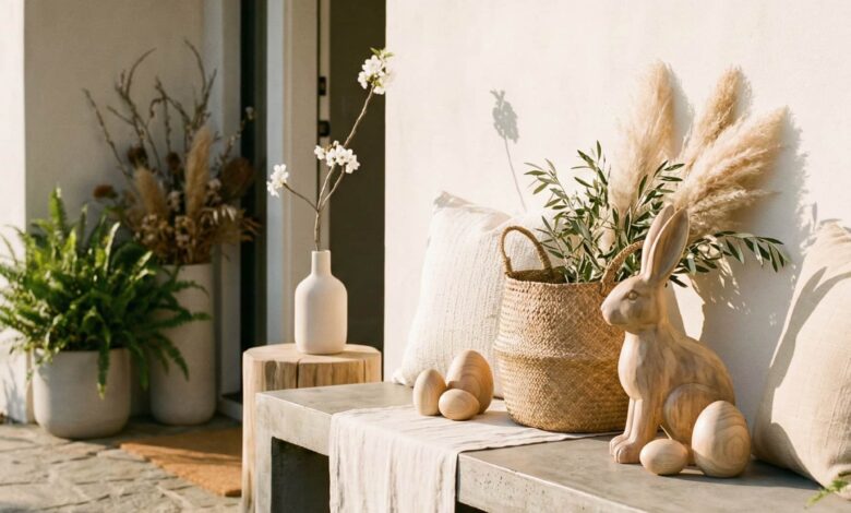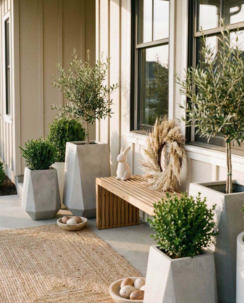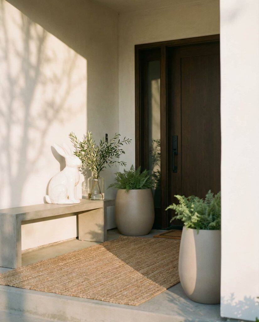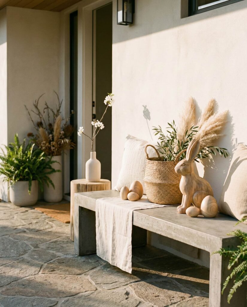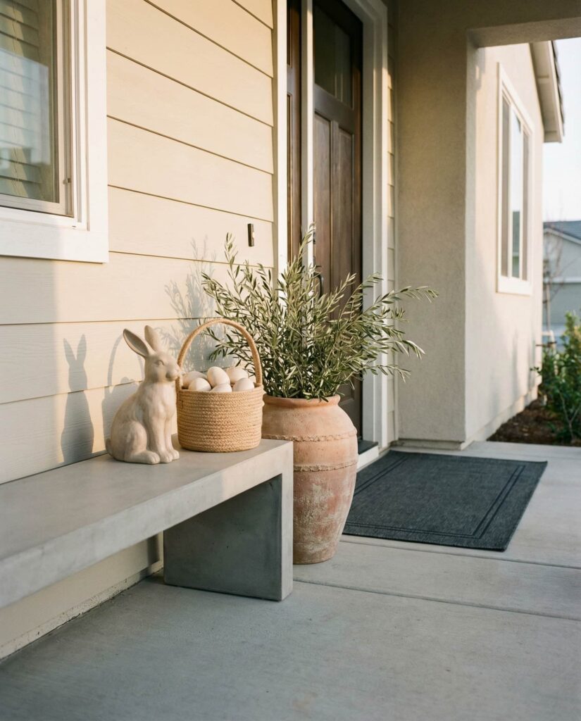 16. Modern Neutral Porch With Minimal Easter Touches