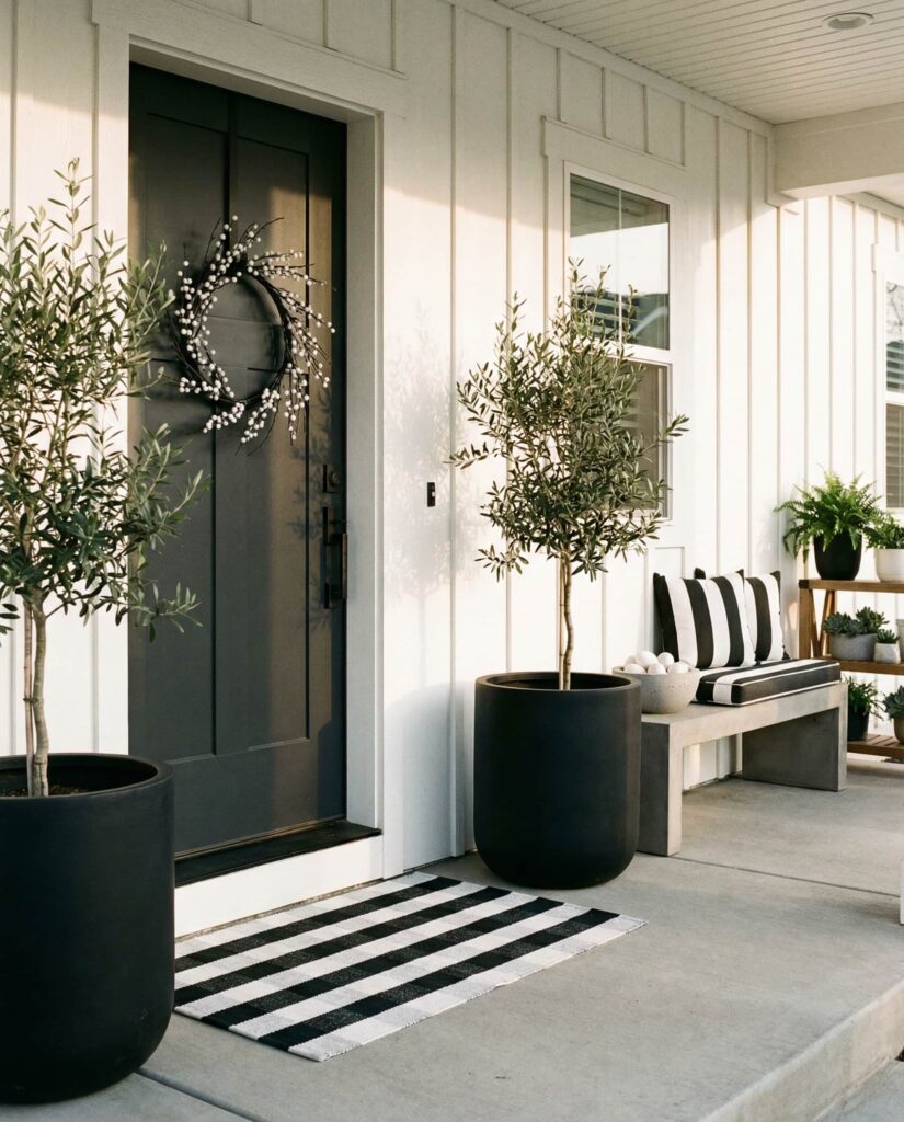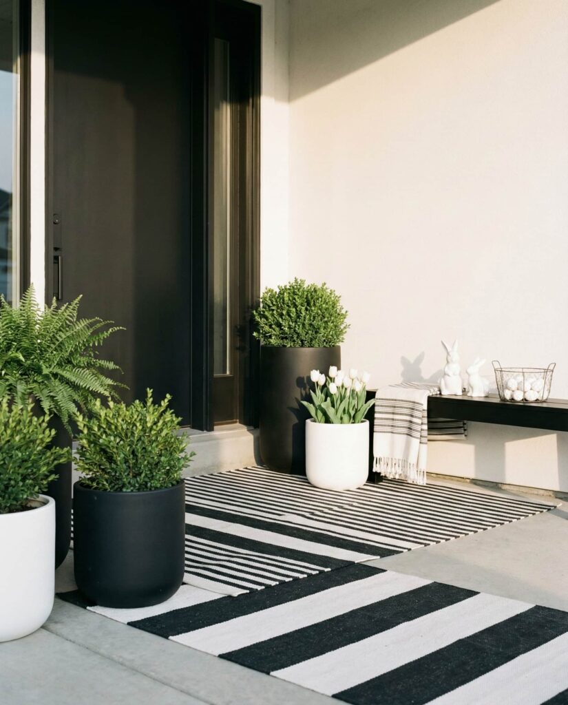 4. Black and White Easter Porch With Modern Contrast