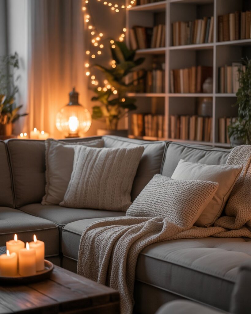 Lighting defines ambiance. Add table lamps, string lights, and candles to highlight warm colors and cozy accents. Whether paired with grey couch or with black couch, lighting creates emotional texture. It’s the final touch that transforms a room from ordinary to memorable.