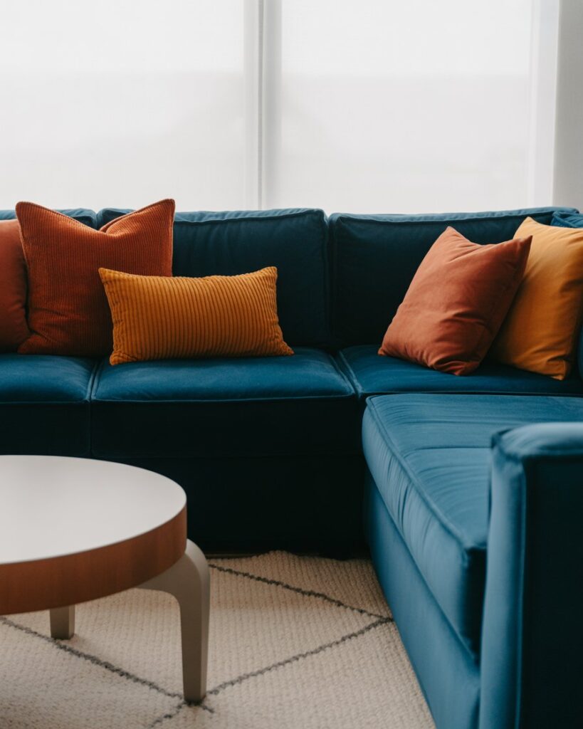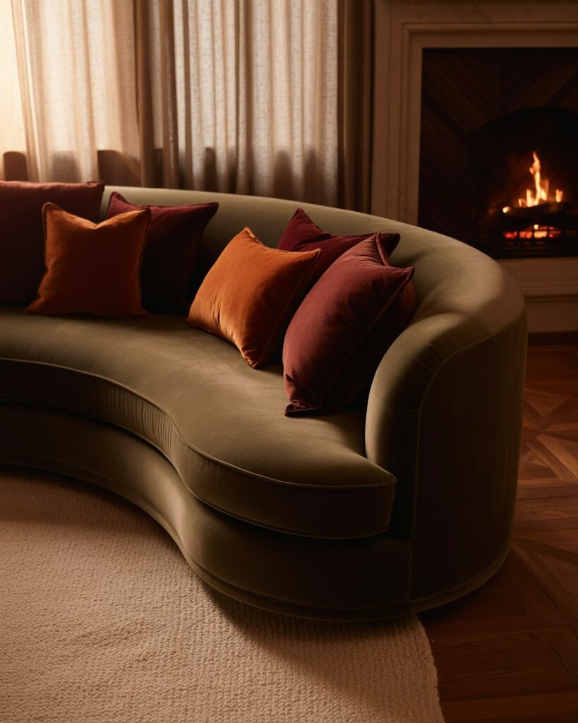 Velvet embodies autumn cozy luxury. Accent your dark grey couch or blue couch with velvet decorative pillows in mustard or wine tones. The play of texture and sheen feels elevated yet inviting. As designer Kelly Wearstler says, “texture is emotion you can touch.”