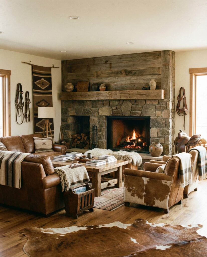 The Western influence brings character without going rustic-cliché. Think warm woods, leather accents, and handcrafted decor ideas inspired by the American landscape. These living rooms often feature rich Earthy hues, a sturdy Fireplace, and substantial Furniture that feels anchored. This direction resonates with homeowners in both rural and suburban settings who want authenticity. I’ve seen this style shine in family homes where durability matters. Paired with neutral Paint colors and modern layouts, Western elements feel timeless rather than themed.