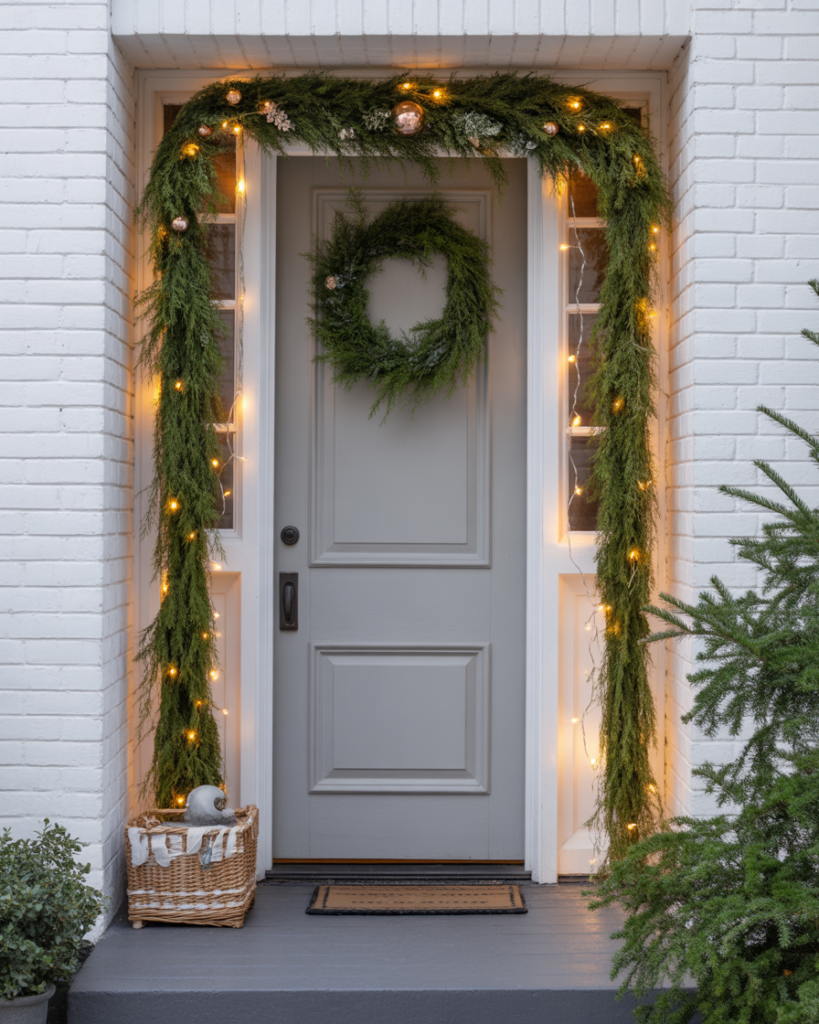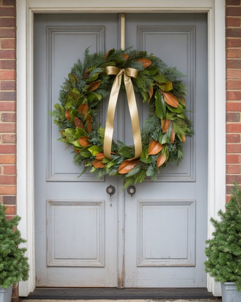 A large wreath can define your entryway’s mood. Go bold with mixed evergreens, magnolia leaves, or metallic ribbons for a classy yet natural look. Add a few pinecones or ornaments for texture. According to Elle Decor, oversized wreaths can instantly elevate your curb appeal and create a grand holiday welcome.