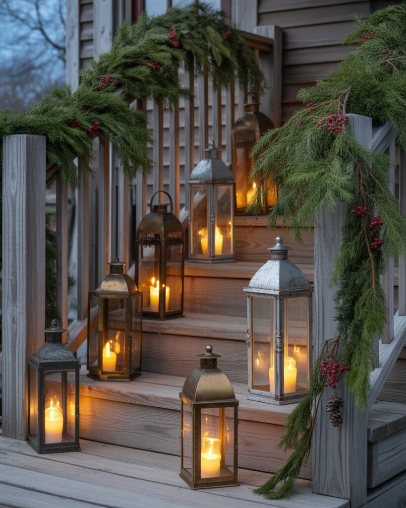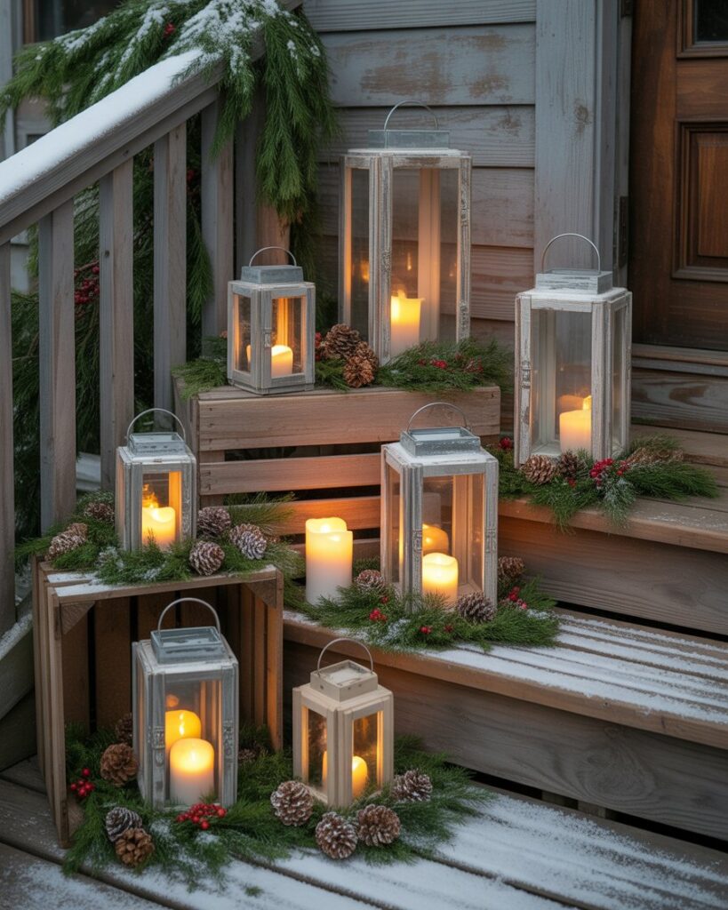 For a truly rustic ambiance, gather mismatched lanterns in different heights and fill them with candles or LED lights. This ideas diy rustic approach is both easy and affordable. It creates a soft glow that feels like home, reminiscent of snowy walks and fireside cocoa. It’s ideal for outdoor porches or covered patios alike.