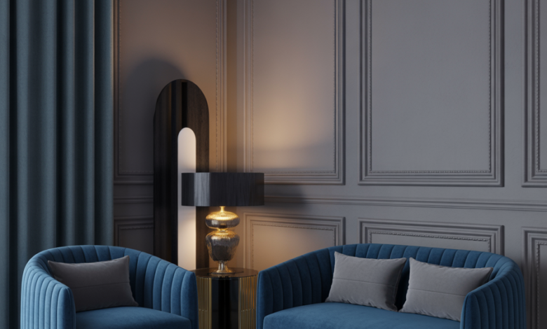 Blue velvet furniture introduces sophistication and texture, especially against matte gray Walls. I’ve seen this look add instant depth to otherwise plain rooms. Pair with black or Black white accents for contrast. Warm wood or Cream textiles keep the room inviting while staying true to Ideas modern and elegant Design ideas.
