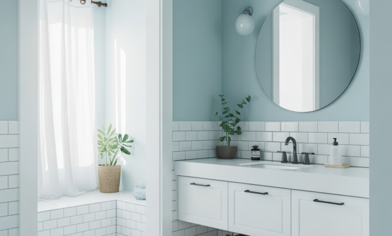 A farmhouse guest bath with soft blue tones and classic accents creates a welcoming, timeless atmosphere. A friend’s renovated barn home used beadboard and brushed nickel in a way that felt cozy yet fresh. This pairing works beautifully for hosts who love simple American charm.