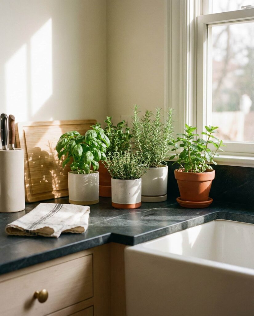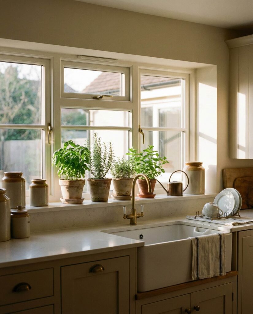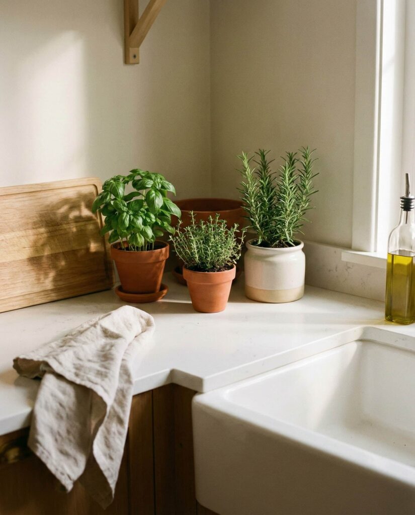 An Indoor herb garden built around the Kitchen window remains one of the most personal ways to grow herbs, especially in Small indoor homes. I’ve noticed more homeowners placing Potted herbs along the Windowsill, even near the Kitchen sink, where watering becomes second nature. This idea suits apartments and houses alike, offering fresh basil or thyme within arm’s reach while cooking. Designers at Apartment Therapy often highlight how this setup blends décor with daily ritual, making it feel intentional rather than improvised. Using cohesive pots keeps it visually calm, while rotating herbs seasonally prevents burnout. It’s practical, comforting, and quietly stylish—proof that small gestures can change how a kitchen feels and functions.
