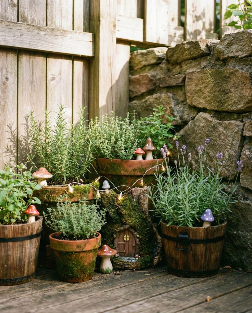 Adding Fairy-style details to herb pots brings charm without overwhelming the plants. I’ve seen families use this approach to involve children in gardening. Small touches encourage care and curiosity while keeping herbs functional. Lifestyle magazines often note that playful elements increase engagement. It works well in patios or yards where personality matters as much as yield.