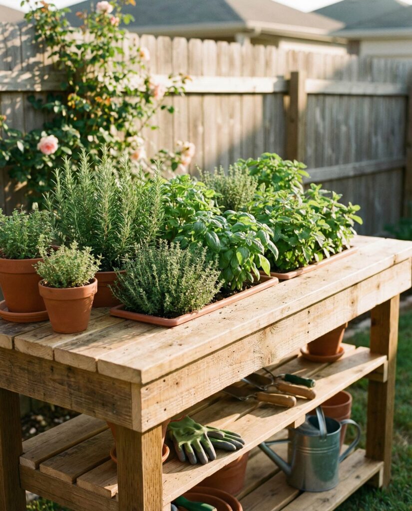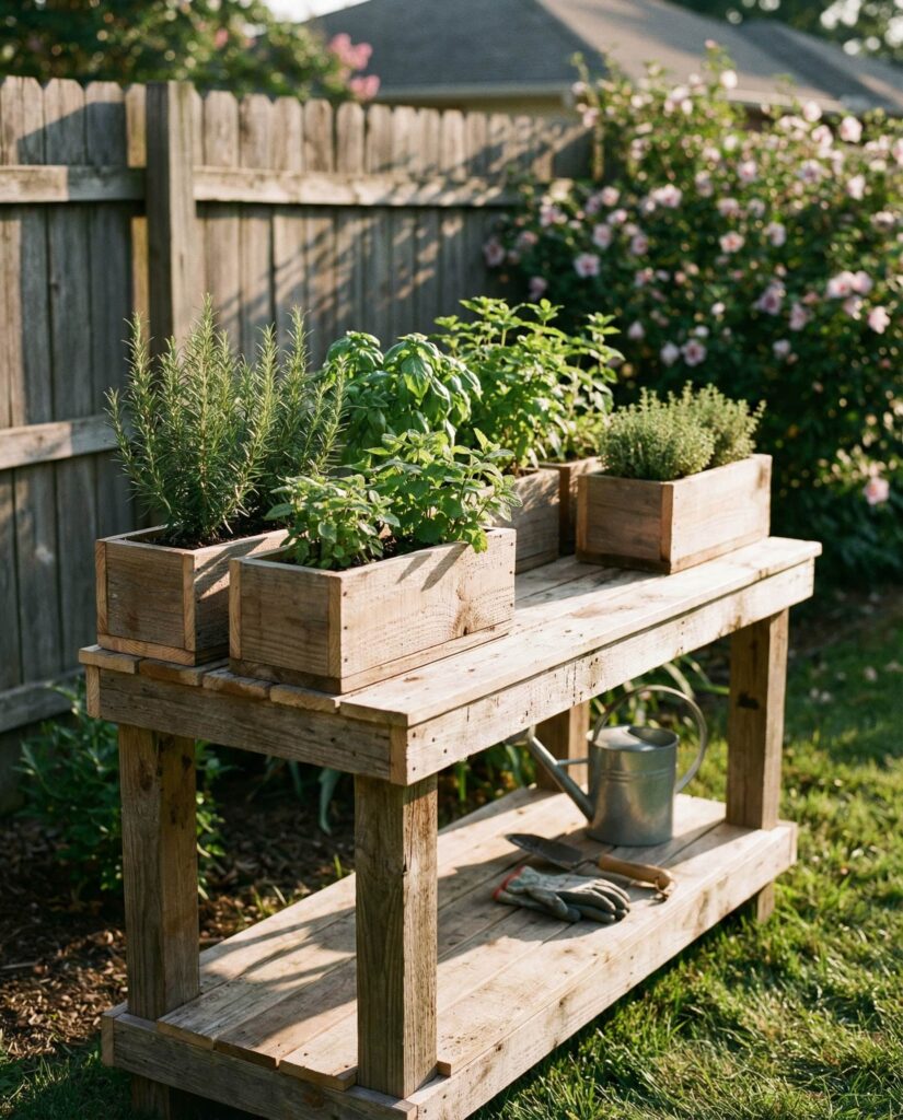 An outdoor diy herb table is a smart alternative to traditional beds in outdoor backyards. Built at waist height, it reduces bending while offering generous planting depth. I’ve seen homeowners repurpose old worktables into herb stations using liners and drainage holes. This idea suits renters and homeowners alike, especially those wanting flexibility. Garden writers often praise table gardens for accessibility and organization. Herbs stay contained, protected from pets, and easy to harvest. It’s a hands-on, maker-friendly concept that blends craftsmanship with everyday usability.