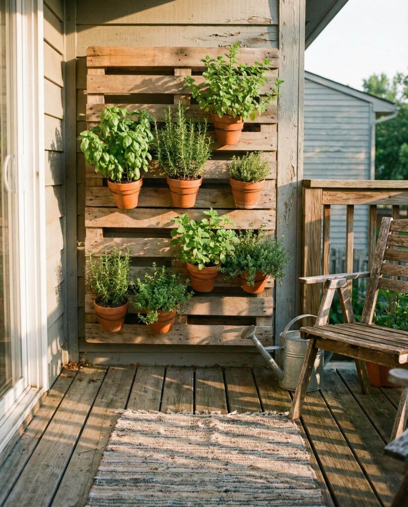 A vertical Pallet herb wall works well on a Small deck, especially where floor space is precious. I’ve built one using reclaimed wood, and it instantly added character. This diy approach appeals to gardeners who enjoy hands-on projects without major expense. The structure keeps herbs organized and visible, while the deck remains usable. It’s a practical solution that feels personal and resourceful rather than store-bought.