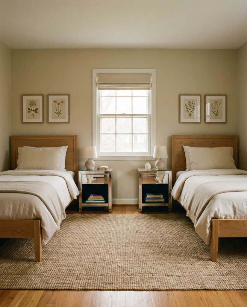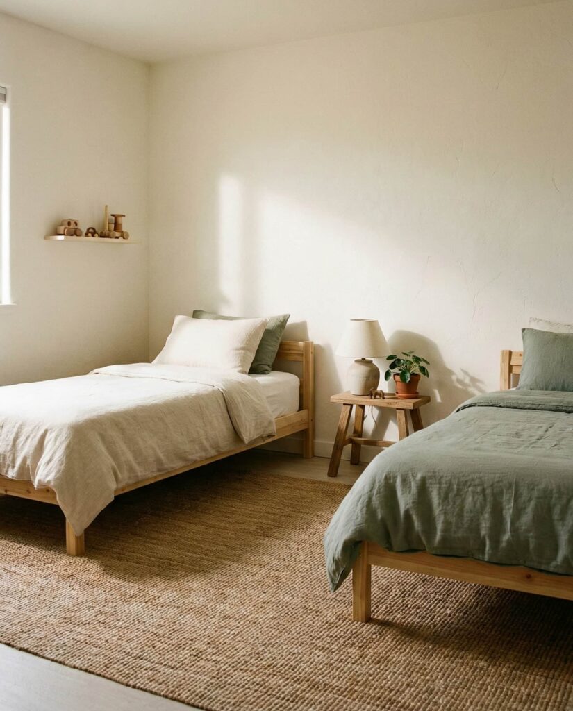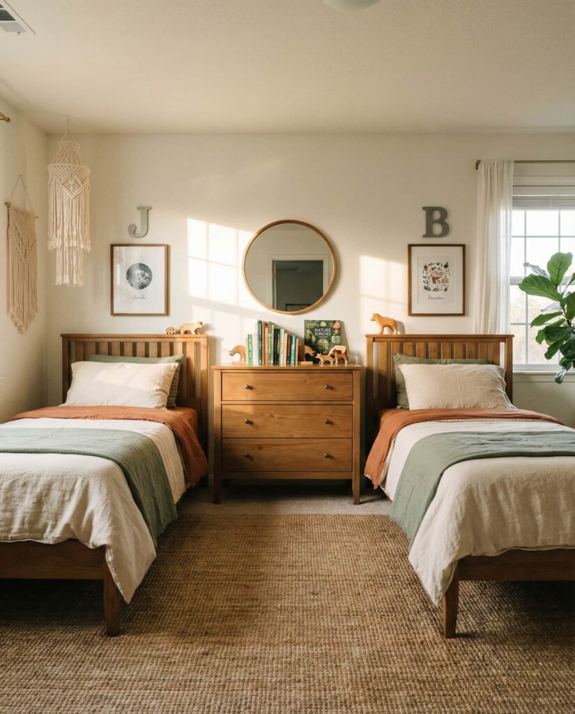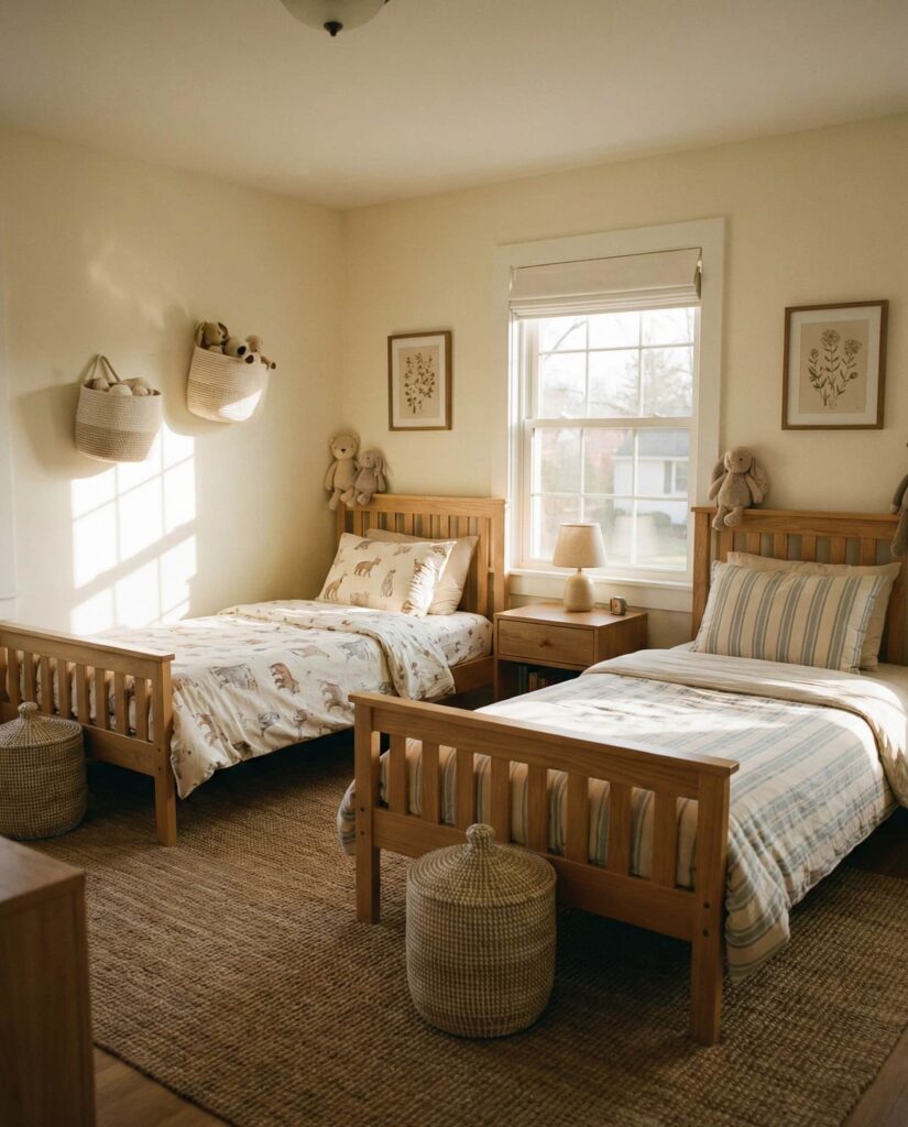 A Neutral base is one of the most future-proof Ideas for shared rooms. It works equally well for ideas boy and girl, Unisex room concepts, and changing tastes. Designers often recommend soft grays, warm whites, or beige walls paired with flexible decor accents. I’ve noticed parents appreciate how neutral palettes reduce visual noise and make rooms easier to refresh over time. Emily Henderson often highlights neutrality as a long-term design investment.