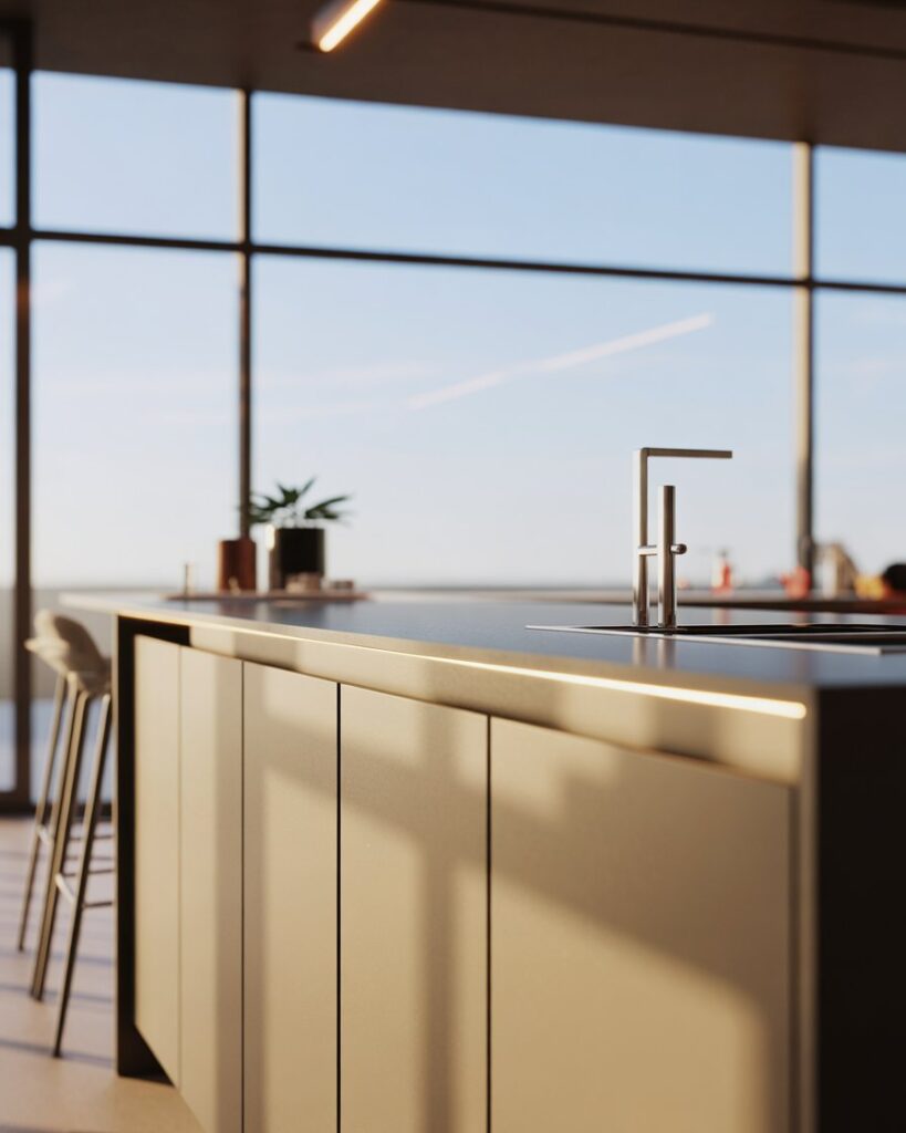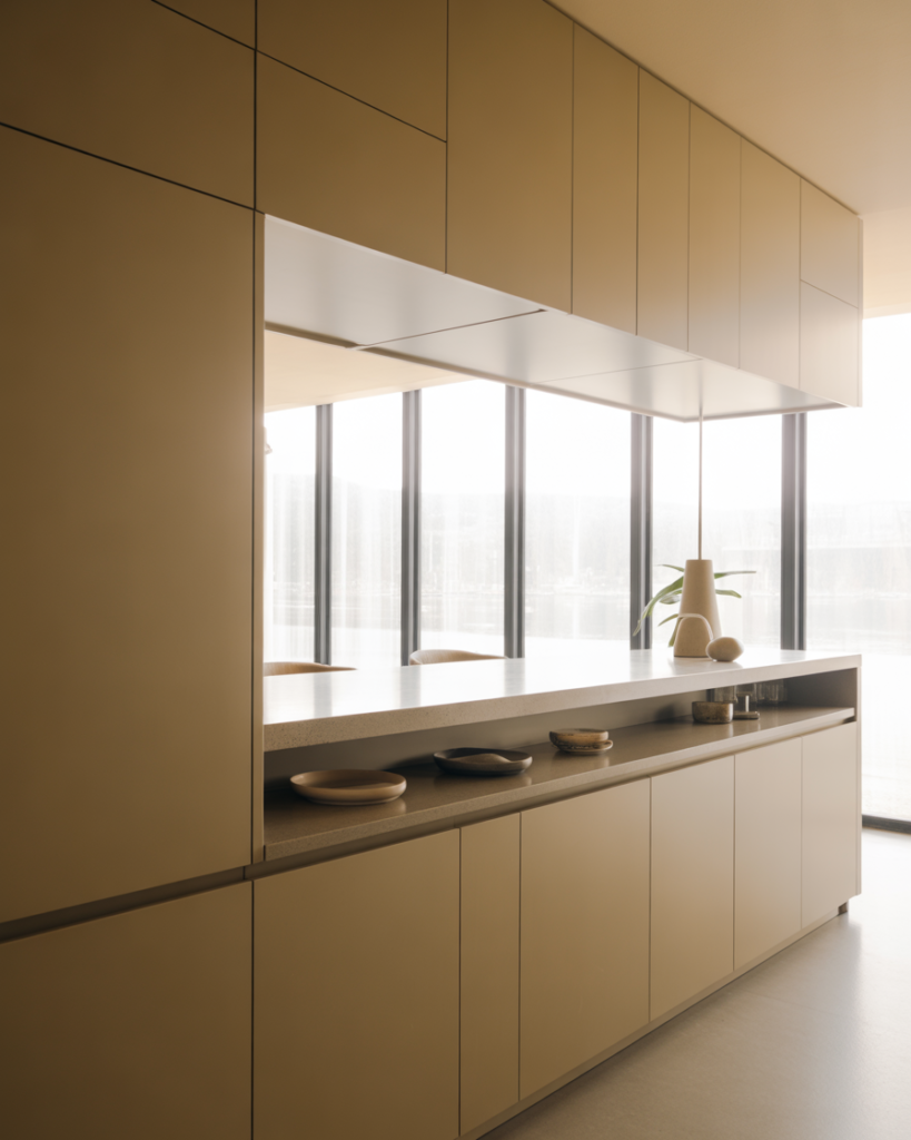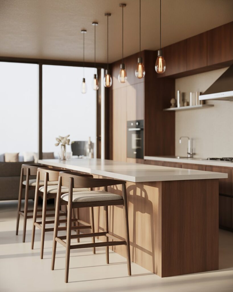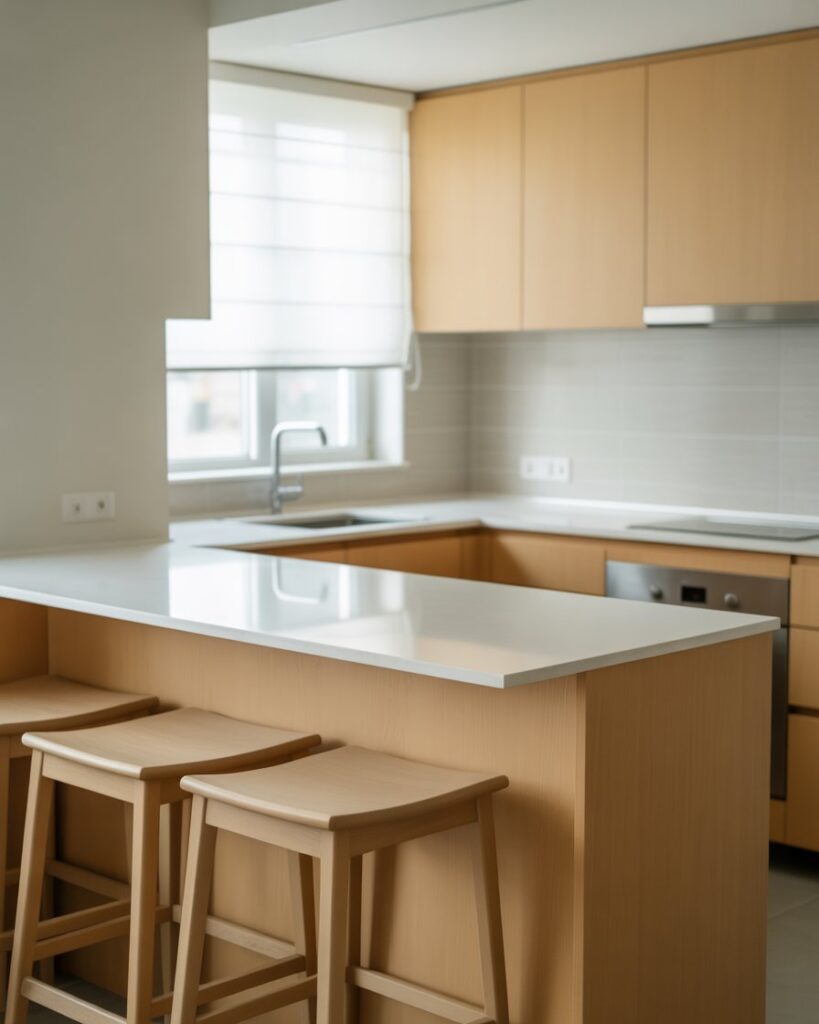 A bar built against wall window zones creates a peaceful spot for morning coffee. With slim countertops decor and open views, it suits studios, townhomes, and bright home kitchens. I’ve seen friends use this idea to turn unused windowsills into charming, sunlit dining spots.