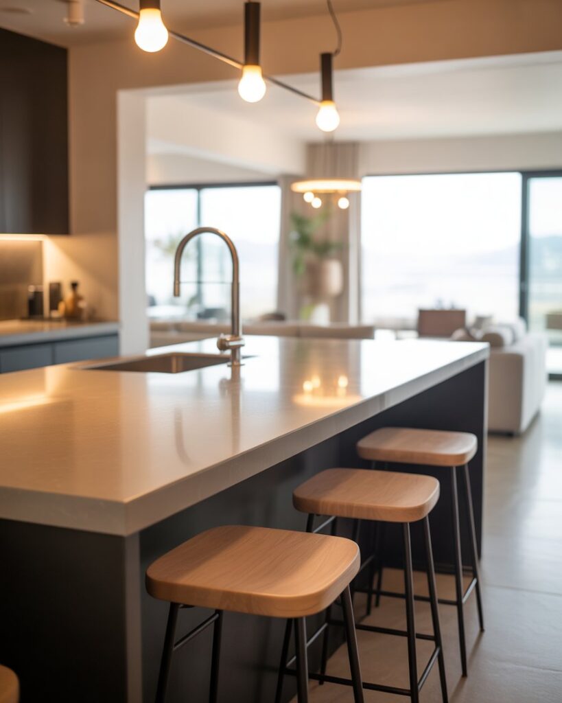 In open floor plans, a kitchen bar naturally connects cooking, dining, and lounging. Smooth countertops and easy seating support spontaneous chats while preparing meals. I’ve seen these bars thrive in homes where hosting feels casual and friends wander freely between spaces without barriers.