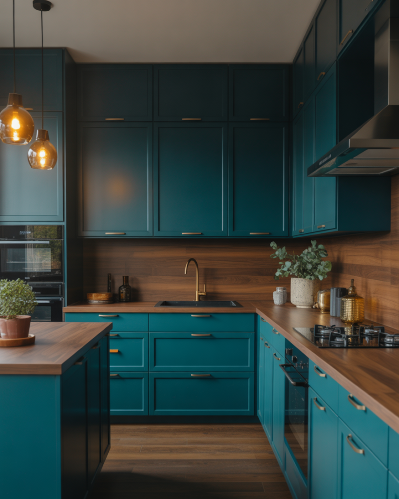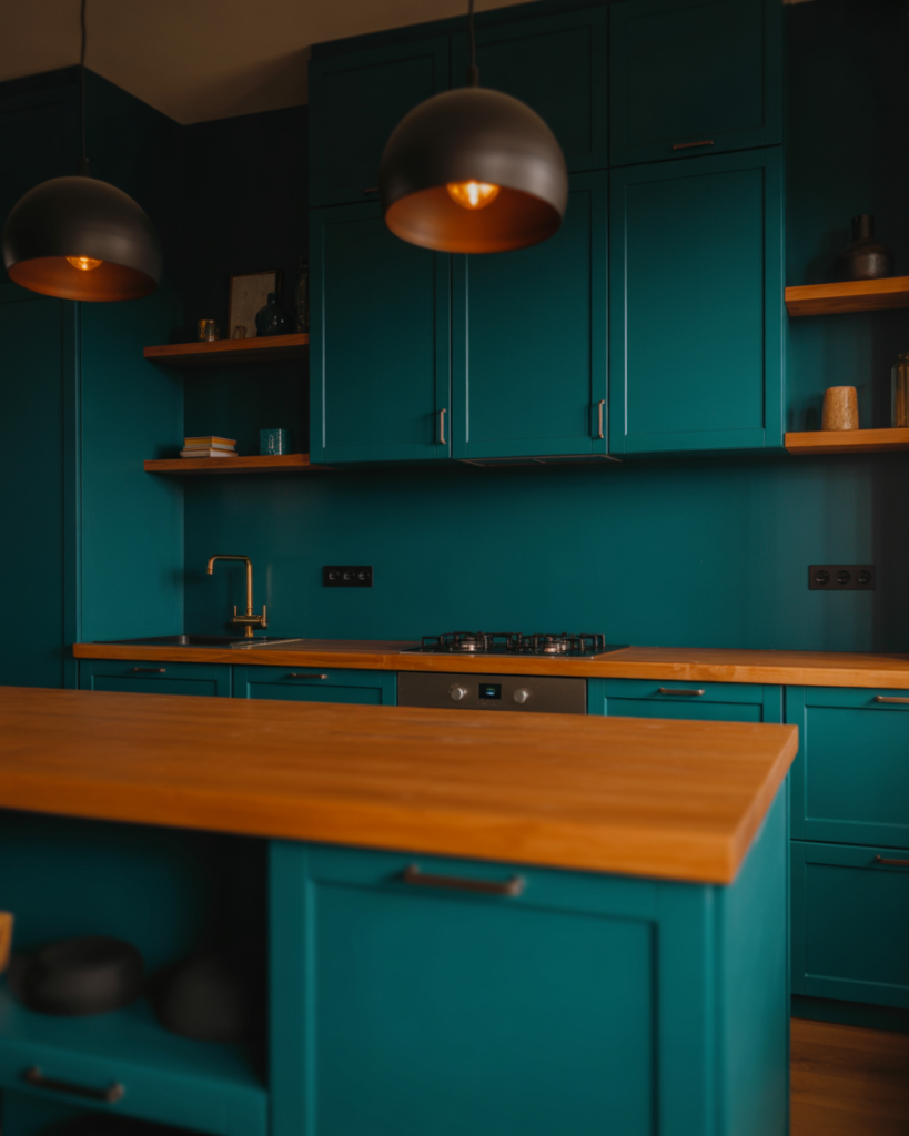 Ocean-depth teal brings a confident, saturated look to kitchens, especially when used with wood cabinets or accented by metallics. It’s ideal for walls or lower cabinets in modern, eclectic, or creative homes where bold color enhances personality. Designers predict teal will appear throughout 2026 as homeowners embrace expressive, jewel-toned ideas that still feel connected to nature.