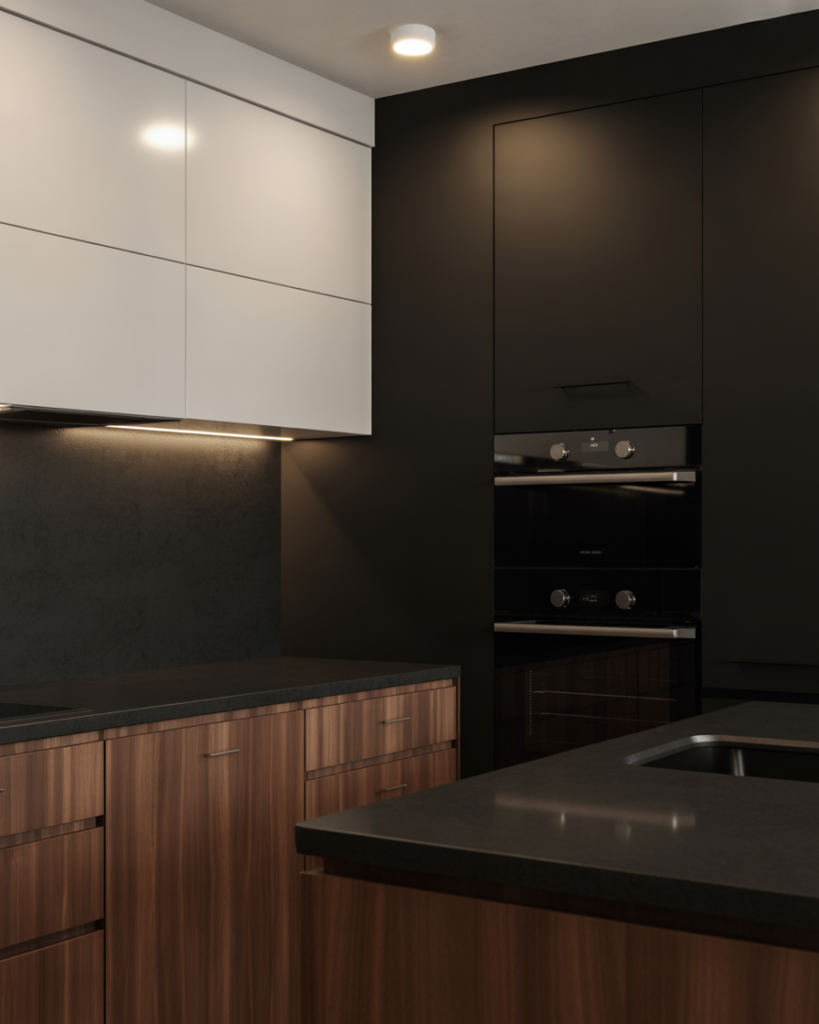 Matte iron black is bold yet surprisingly versatile, especially with white cabinets or walnut wood cabinets. It creates a dramatic contrast for walls or accent areas while staying sleek and modern. Many high-end designers predict black interiors will trend in 2026 as homeowners embrace moody and architectural color ideas that highlight texture and structure instead of ornamentation.