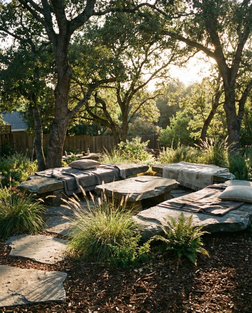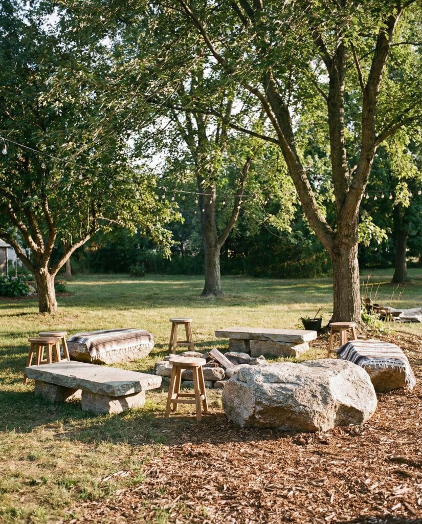 3. Backyard Gathering Zones Anchored by Stone