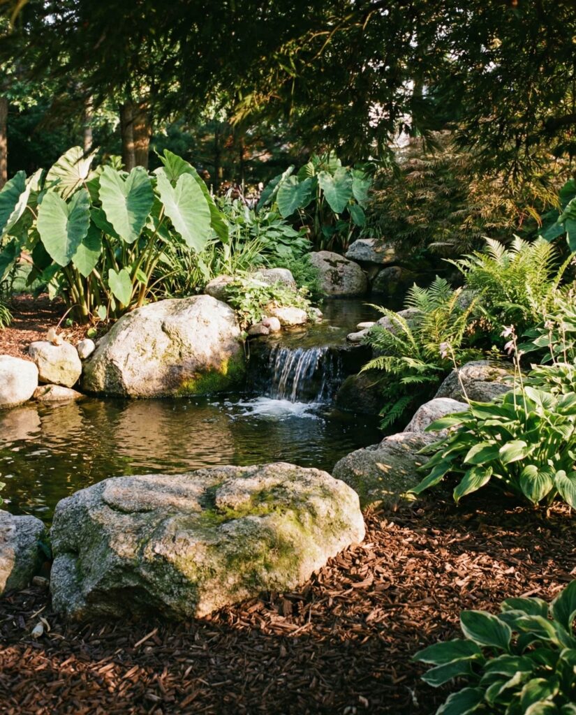 Even without a full Pool, large rocks elevate small water features in the Backyard. Stones placed near fountains or reflecting basins make water feel rooted in the landscape. I’ve observed this approach brings calm and a sense of retreat, especially when paired with Tropical plants. Rocks help visually cool the space and create contrast against greenery, making the area feel intentional and serene.