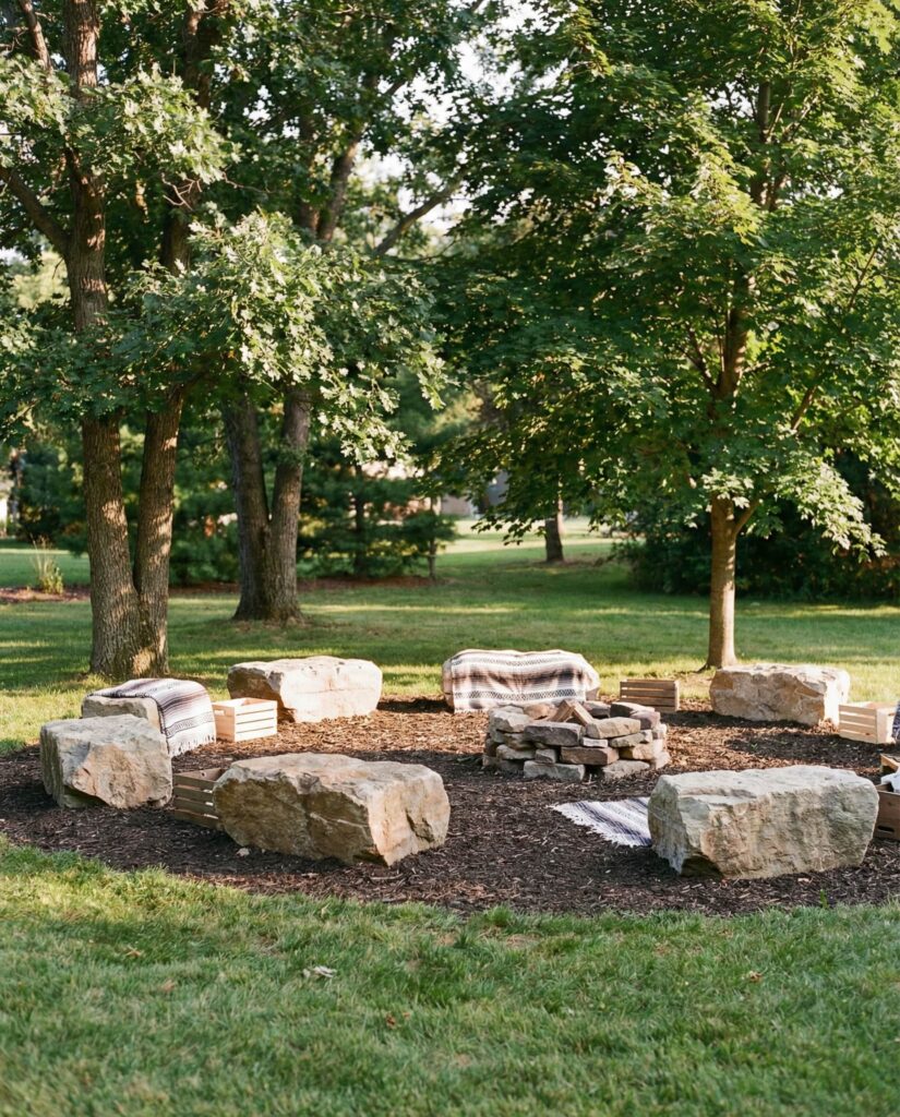 Using large rocks as informal Outdoor seating is gaining popularity, especially in relaxed Backyard settings. Flat-topped stones placed near fire pits or under Trees feel instinctive, as if nature itself provided the furniture. I’ve seen this approach work beautifully in a Yard where traditional chairs felt too structured. Paired and grasses or surrounded by Mulch, the rocks stay cool in Full sun and blend seamlessly into the landscape. This idea suits both Modern homes and rustic properties, offering durability without sacrificing comfort. Over time, these stones become familiar gathering spots, encouraging people to linger, talk, and enjoy the space without the formality of arranged furniture.