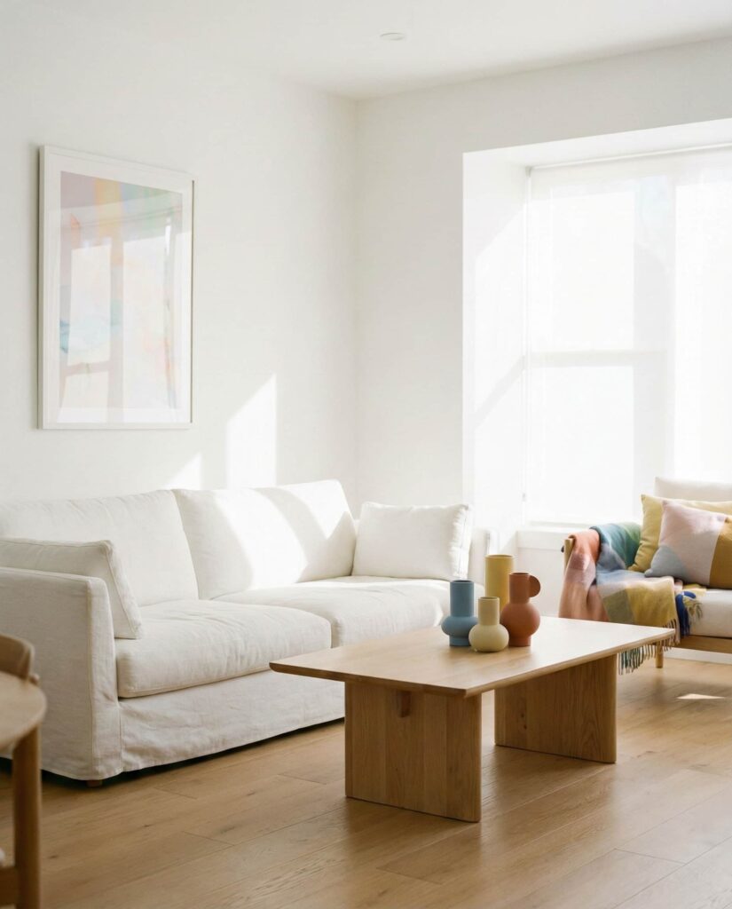 A Bright white living room layered with subtle color accents offers a clean backdrop for everyday life. This approach appeals to homeowners who like flexibility, as accent colors can change with seasons or trends. I’ve noticed many designers recommend this palette for smaller spaces, where white enhances natural light. Pops of color through art or pillows keep the room from feeling sterile. It’s a smart, adaptable solution for modern living.