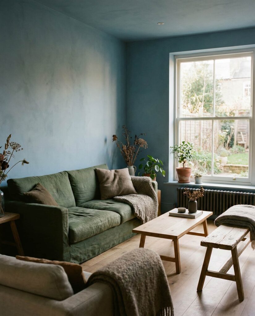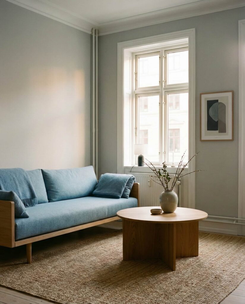 A Scandinavian-inspired palette combining light gray and muted blue creates clarity and balance. This look prioritizes simplicity, function, and natural light. I’ve noticed it works especially well in northern-facing rooms, where cool tones feel intentional rather than cold. Clean-lined furniture and minimal decor complete the effect. It’s ideal for homeowners who appreciate order and visual calm.